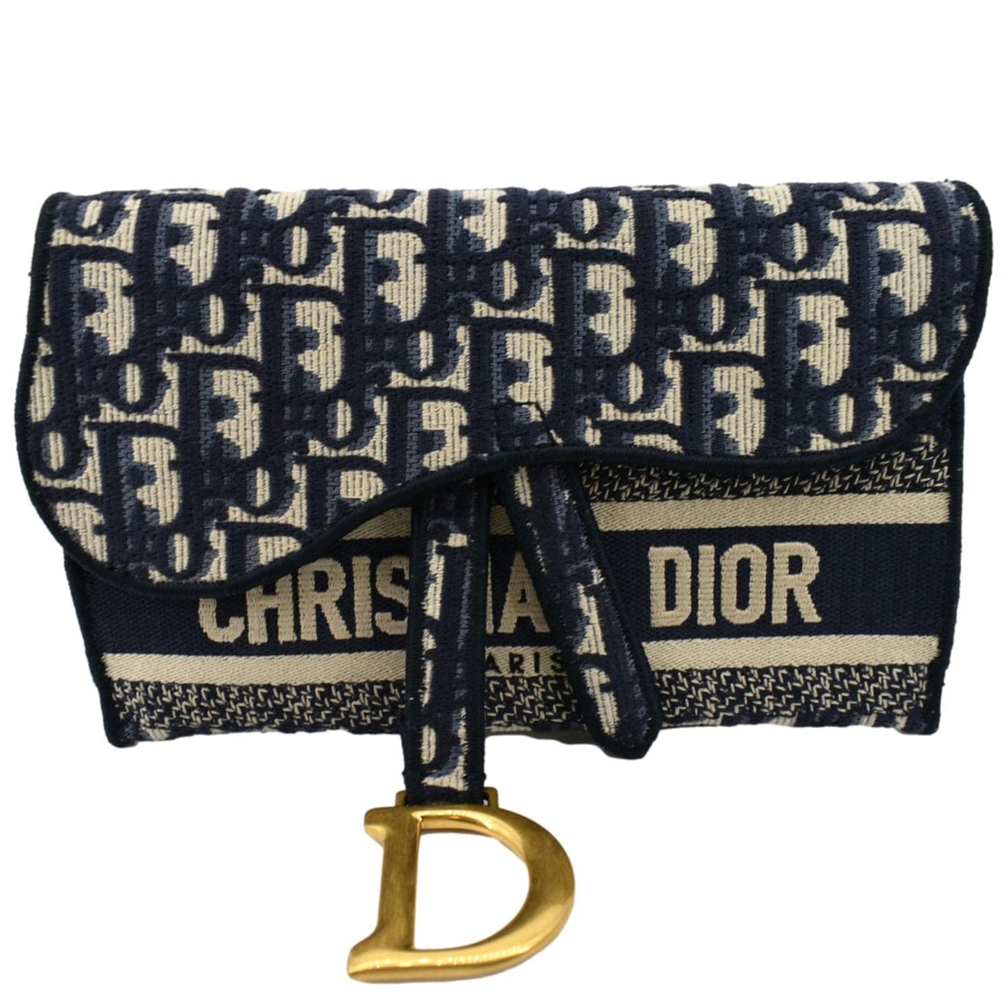 CHRISTIAN DIOR Saddle Oblique Canvas Belt Bag Navy Blue