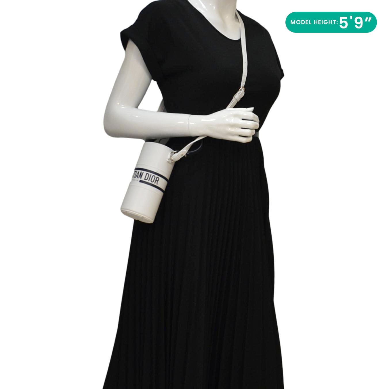The Christian Dior Vibe Bottle Holder Crossbody Bag in White Printed Leather is a stylish and functional accessory. Designed to carry your bottle in luxury, it features bold Dior branding and an adjustable strap for on-the-go convenience.