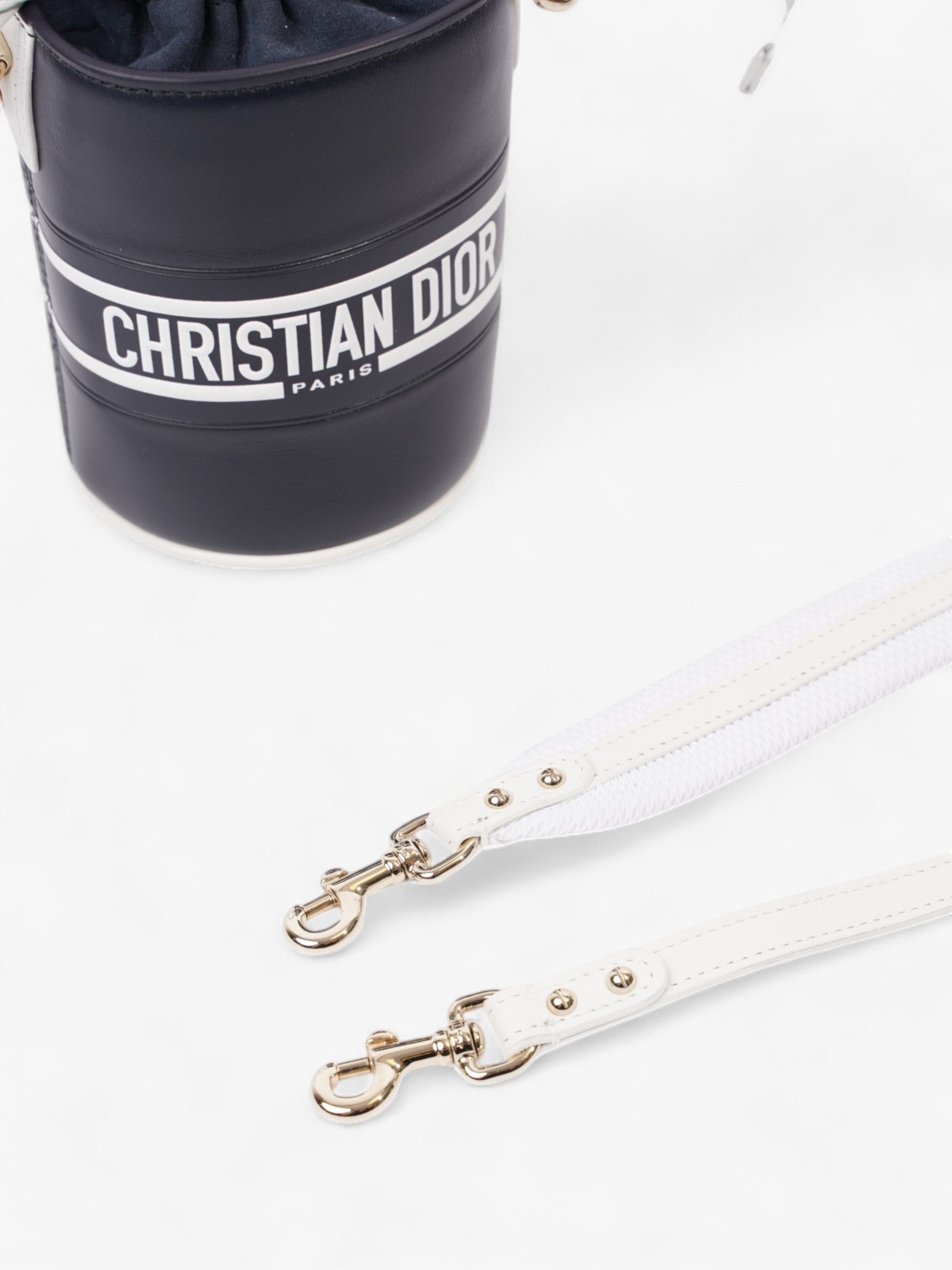 Christian Dior Vibe Bucket Bag Navy Blue / White Leather Micro