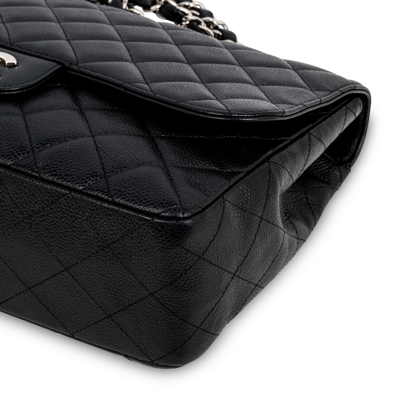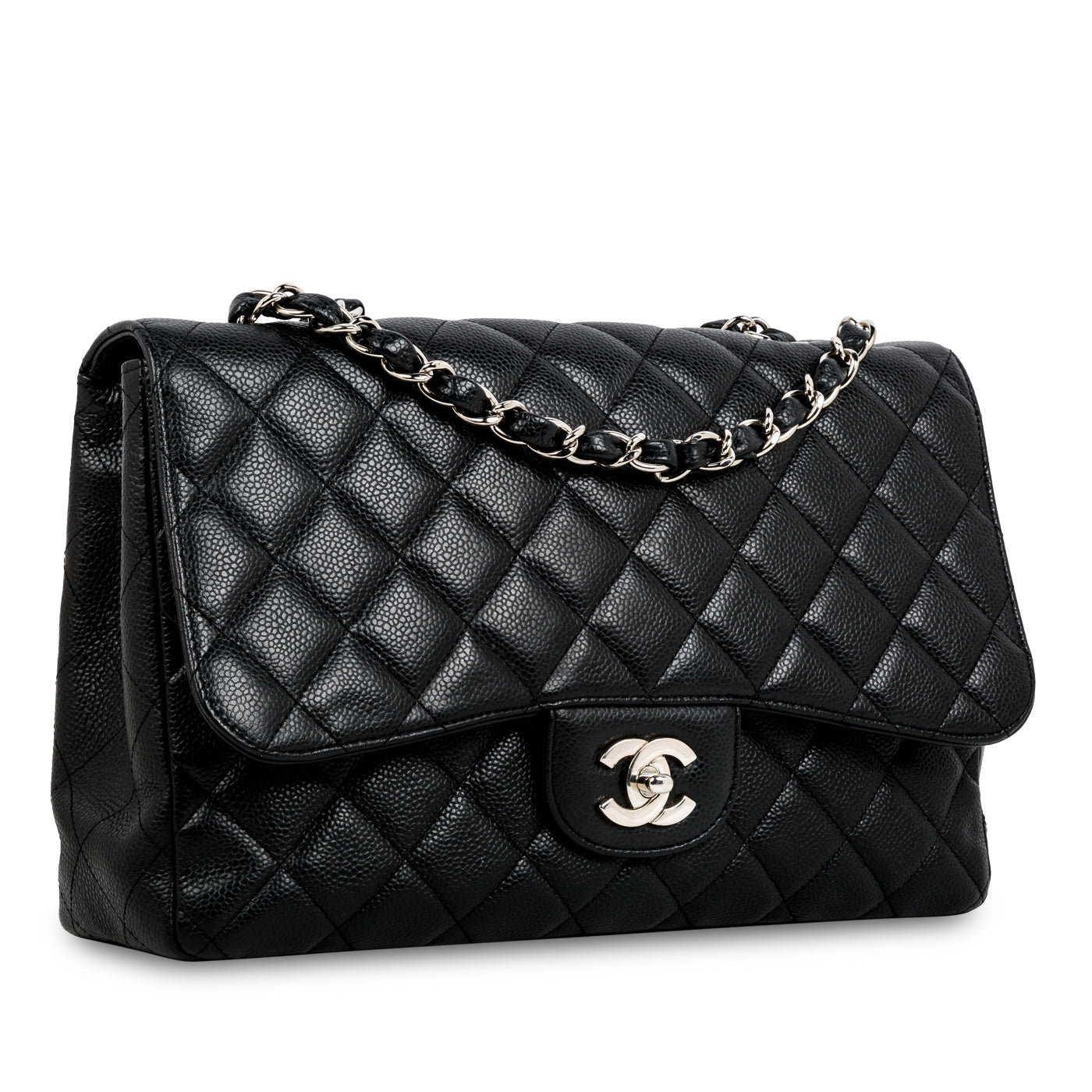 Chanel continues to present its signature line of Classic Flap bags. Designed by Karl Lagerfeld when influenced by Chanel’s 2.55 Reissue handbag, the Classic Flap is perhaps the most acclaimed bag in all of fashion history. Timeless, elegant and sophisticated, it's no wonder the Classic Flap is, well, a classic. Featuring its infamous quilted caviar leather and interwoven chain / leather strap, the Jumbo is an absolute must-have in any luxury handbag collection. Not only is this highly coveted, this stunning black bag is the perfect accessory to compliment pretty much anything you may own in your wardrobe, but it's also an investment piece that will never lose its value. Embodying elegance and traditional femininity to a T, a Chanel bag is a purchase you won't ever regret.