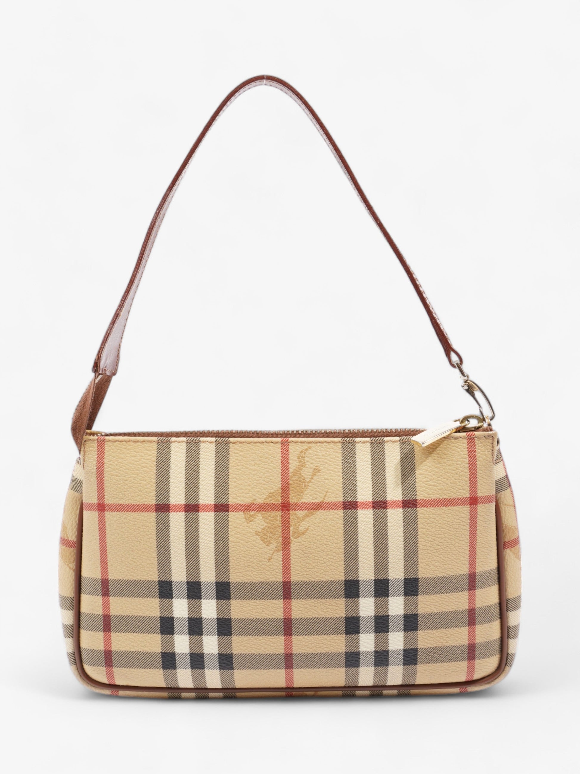 Burberry Classic Zip Shoulder Haymarket Check / Brown Leather Coated Canvas