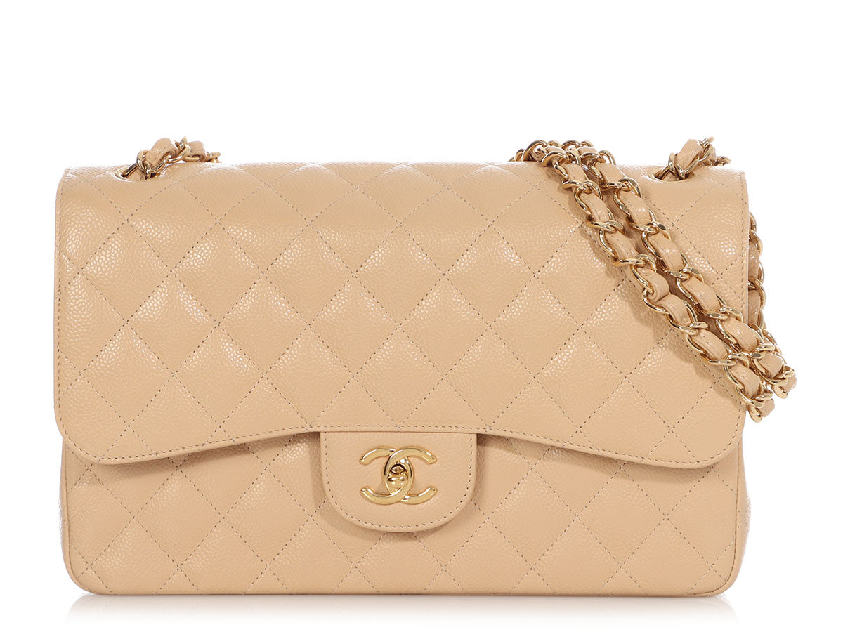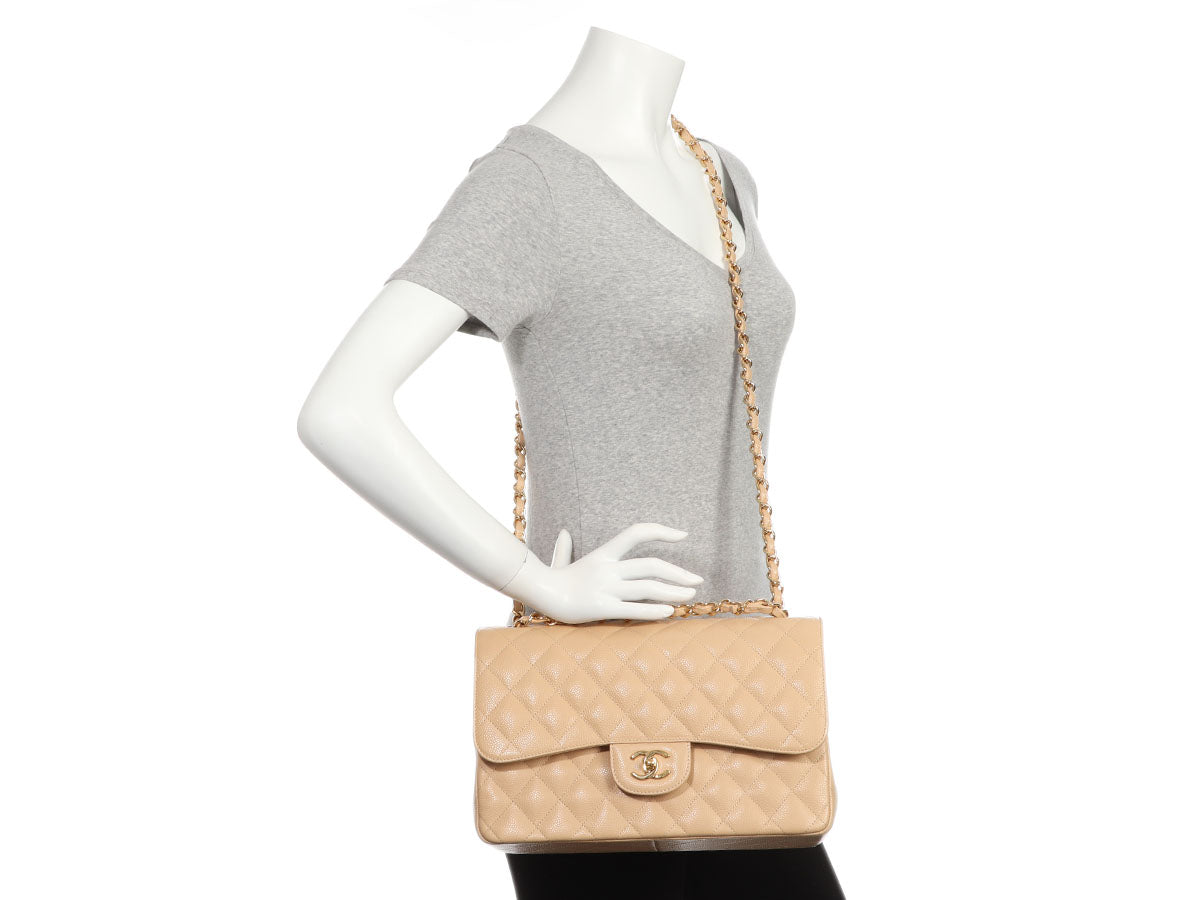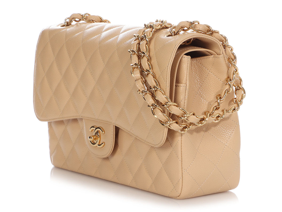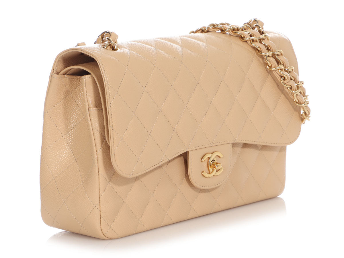 Chanel Jumbo Beige Clair Quilted Caviar Classic Double Flap