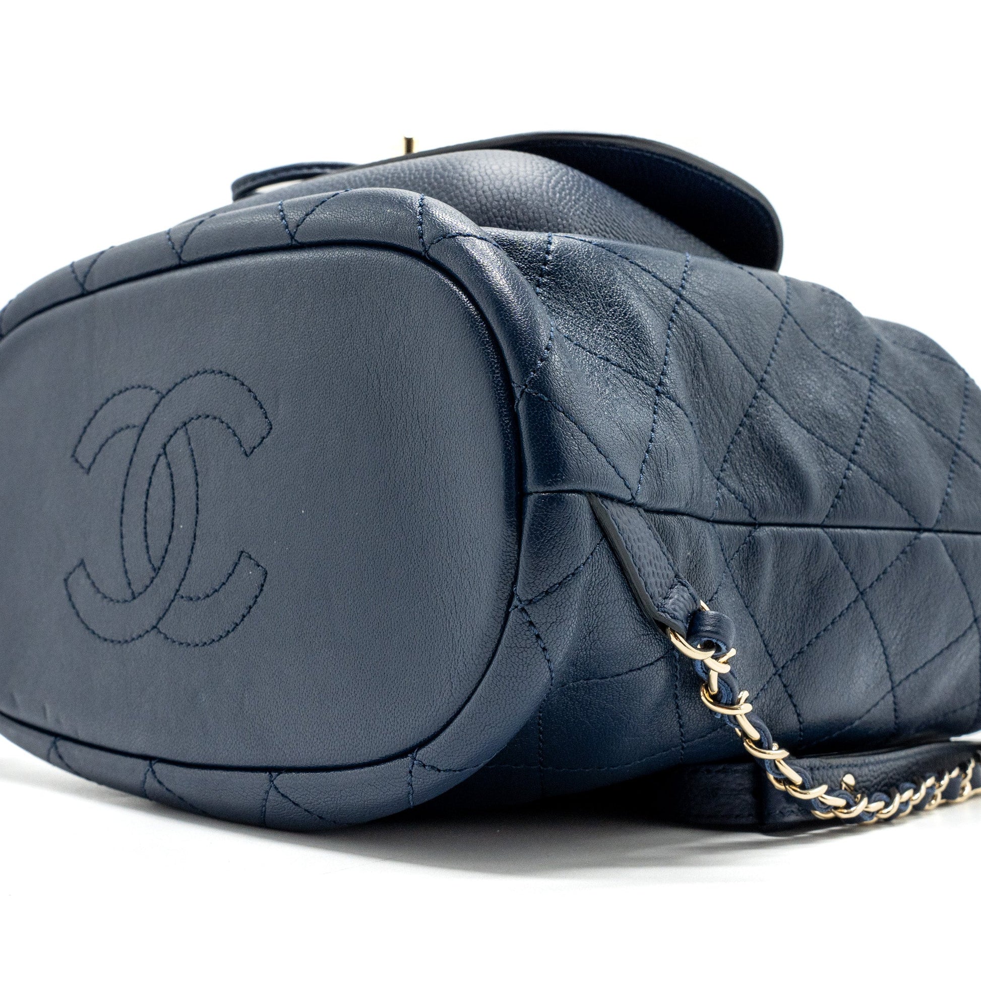 Chanel Drawstring Backpack Lambskin / Grained Calfskin Dark Blue L