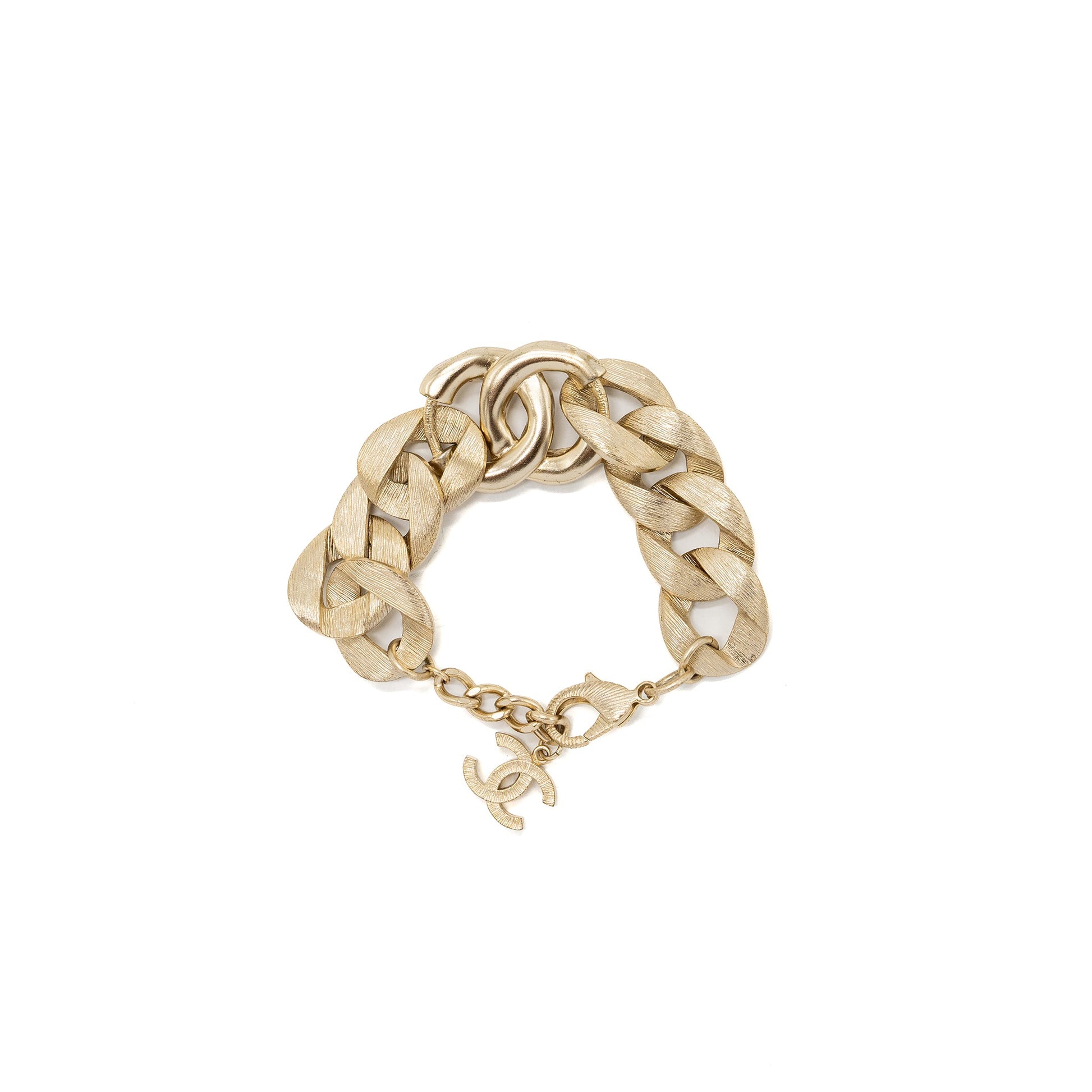 Chanel Giant cc logo chain bracelet with crystal light tone