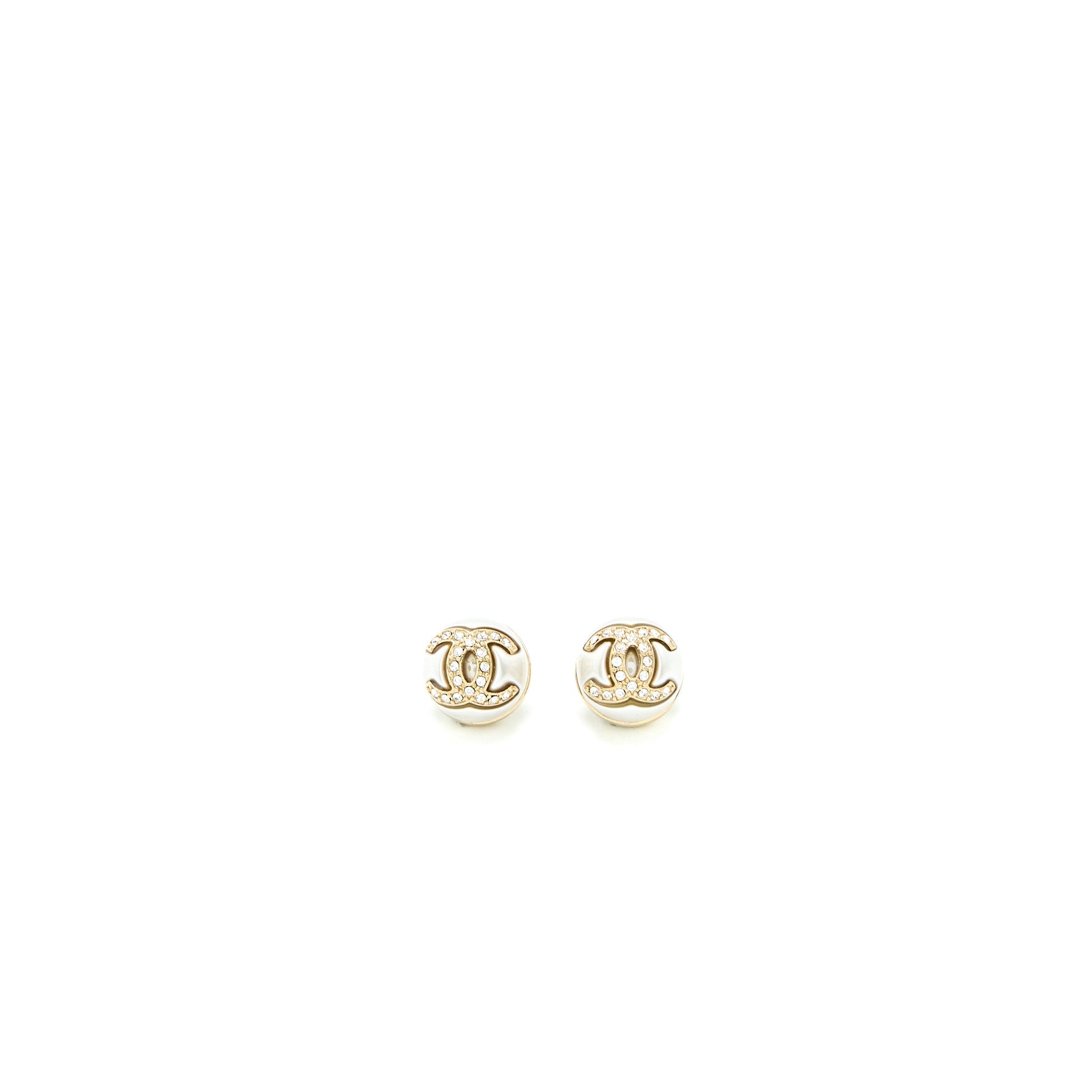 Chanel CC Logo Earrings Pearl/Crystal Light Gold Tone