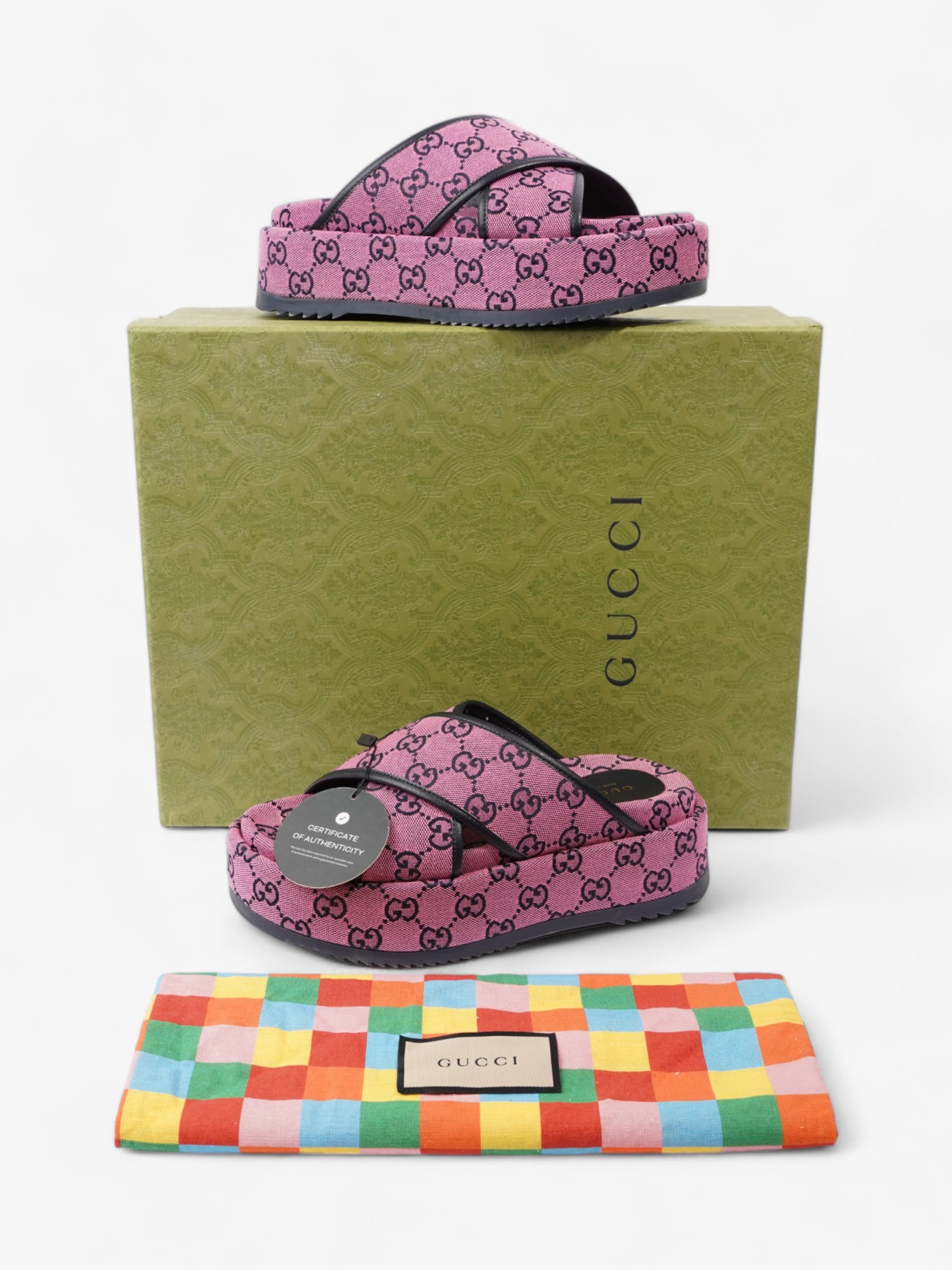 Gucci Crossover Platform Sandal Pink And Navy GG Supreme Canvas EU 36.5 UK 4.5