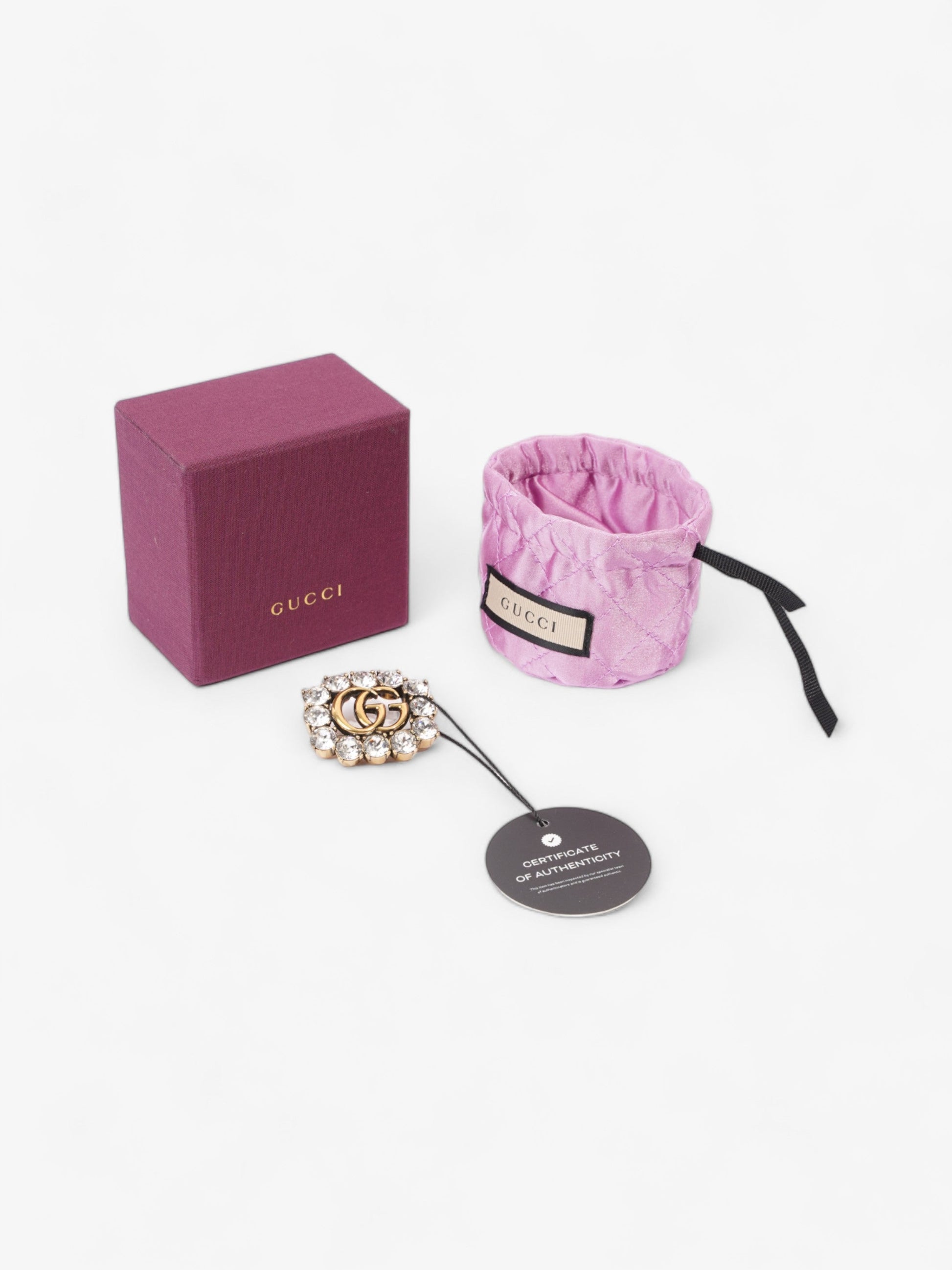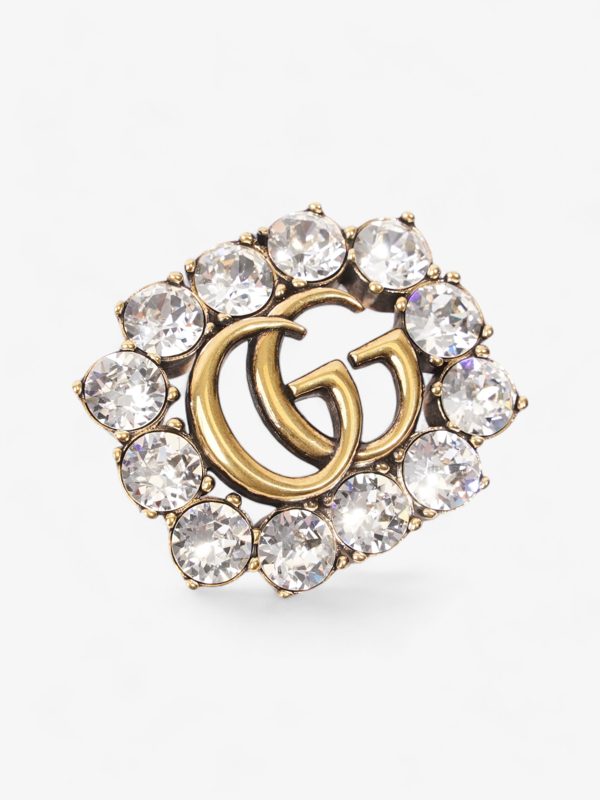 Gucci Crystal Double G Brooch Aged Gold Base Metal