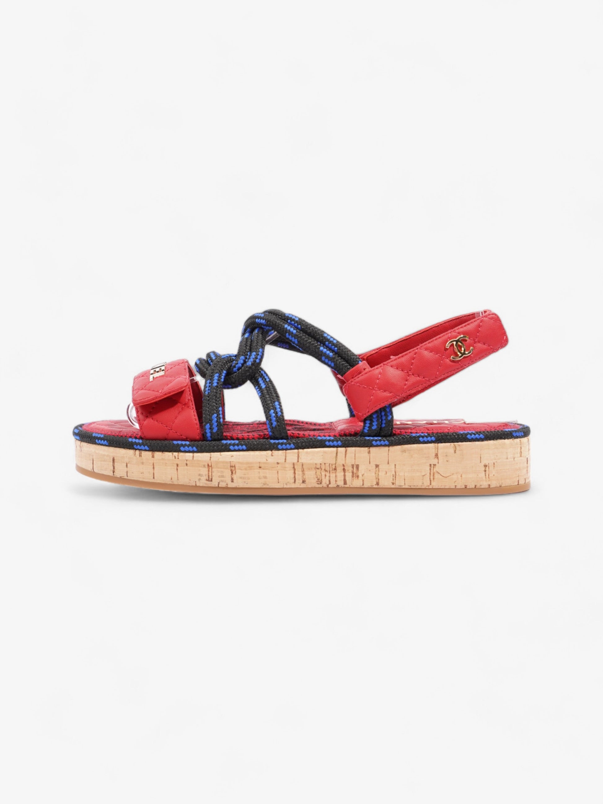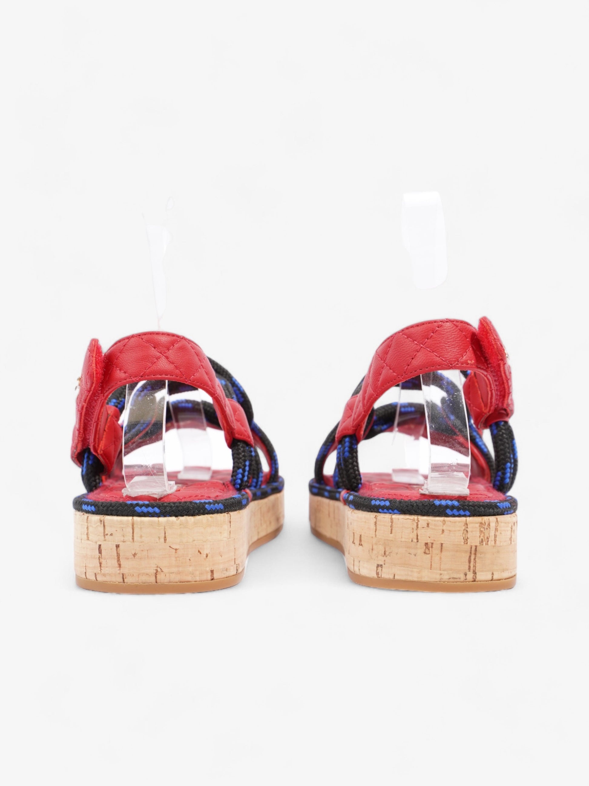 Chanel Dad Cord Sandals Red / Blue / Black Calfskin Leather EU 38 UK 5
