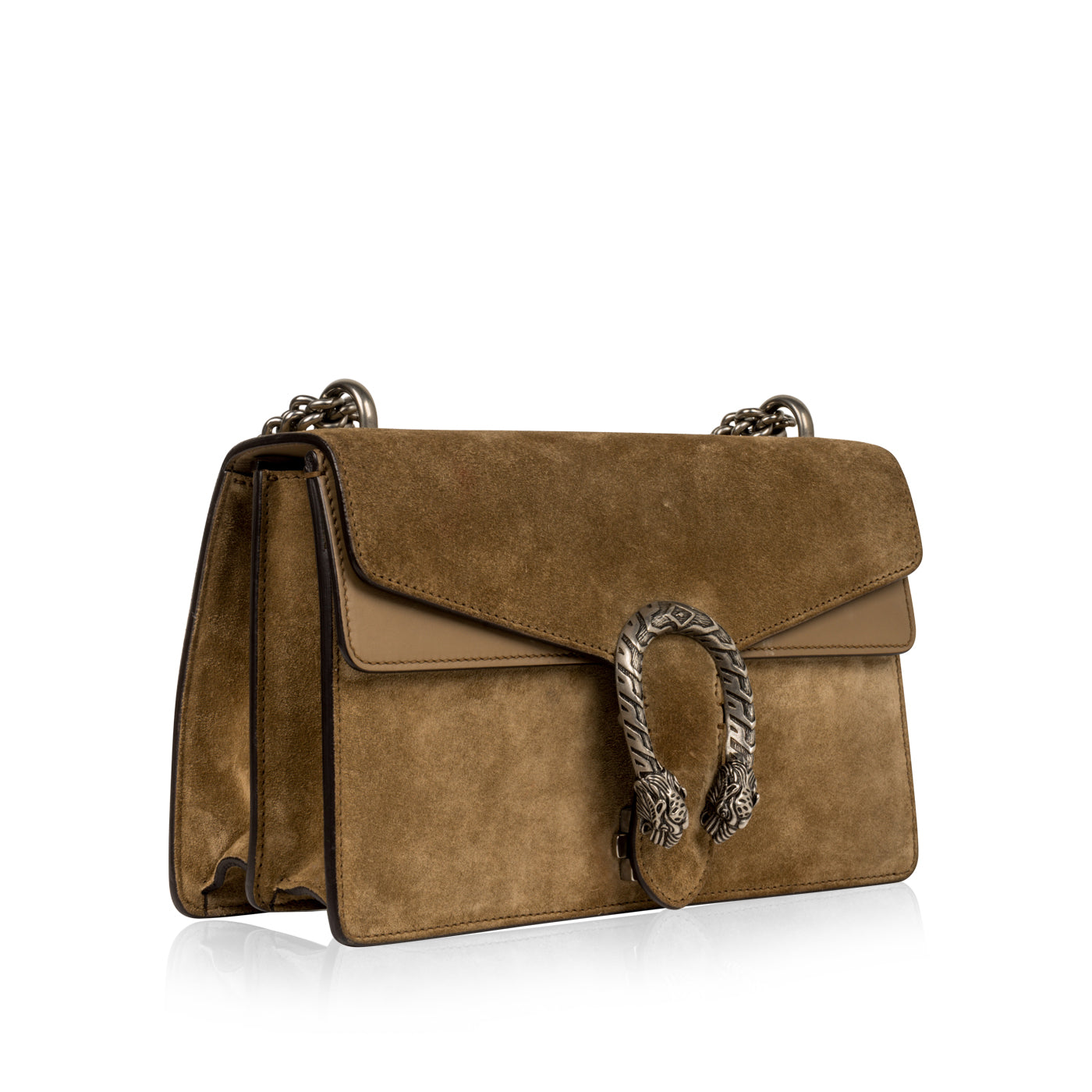 So pretty much, any fashion lover with a soft spot for Gucci needs this bag in their life. Carefully crafted from taupe-coloured suede, this Dionysus is the ideal accessory for basically anything. The perfect piece to dress up or down, the Dionysus features a double flap, signature tiger head clasp and chain strap. Night out? Running errands? Lunch with your girlfriends? This bag is suitable for any and every occasion. Designed for a woman with a love for luxury but not in-your-face luxury, the Dionysus is stylish, fashion forward and understated. It's youthful and playful while remaining sleek and sophisticated at the same time. An instant classic the moment it hit the shelves, the Dionysus has become a Gucci timepiece. A true must-have and a well-worthy addition to any luxury handbag collection, this gorgeous bag is one you won't regret investing in.