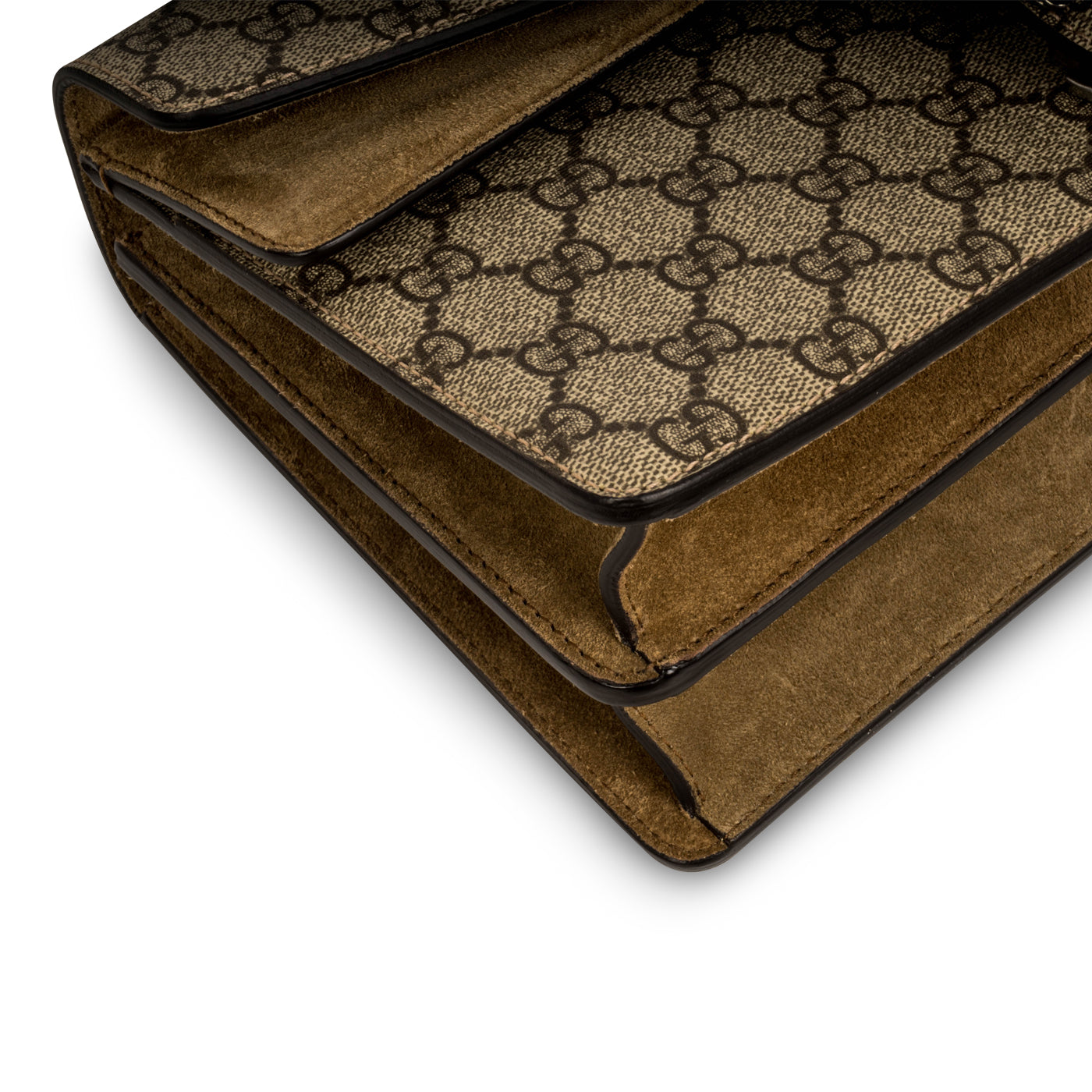 Inspired by the Greek God of wine and celebration, the Gucci Dionysus is an absolute must have for any woman with a love for luxury and a special spot for monograms. An instant classic, the Dionysus has become one of the most coveted bags of the past five years. The perfect companion for any and every occasion, you can easily pair your Dionysus with anything in your wardrobe. Decorated with the GG Supreme print and the signature tiger clasp, this shoulder bag can easily fit all your every day essentials comfortably inside. Sleek, stylish and sophisticated, this stunning bag is the perfect balance between feminine and edgy. A classic piece you'll have for life, the Dionysus is one you'll never fall out of love with.