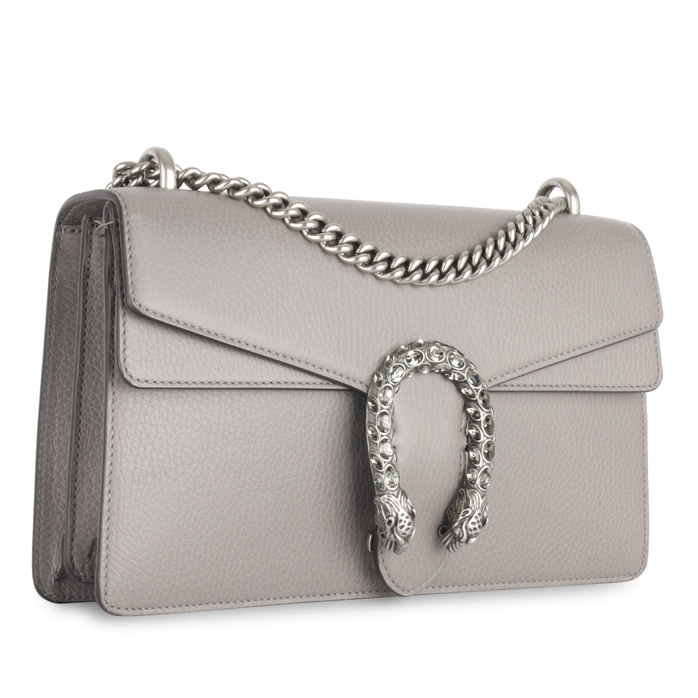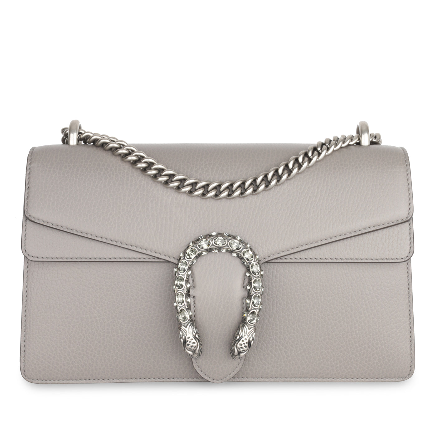 Inspired by the Greek God of wine and celebration, the Gucci Dionysus is an absolute must have for any woman with a love for luxury and a special spot for monograms. An instant classic, the Dionysus has become one of the most coveted bags of the past five years. This particular piece is decorated in grey grained leather and the signature tiger clasp, this shoulder bag can easily fit all your every day essentials comfortably inside.