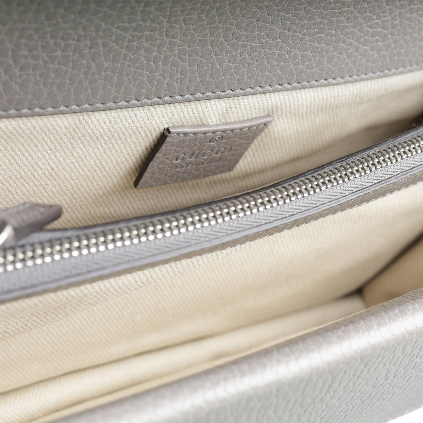 - Gucci embossed leather logo tag