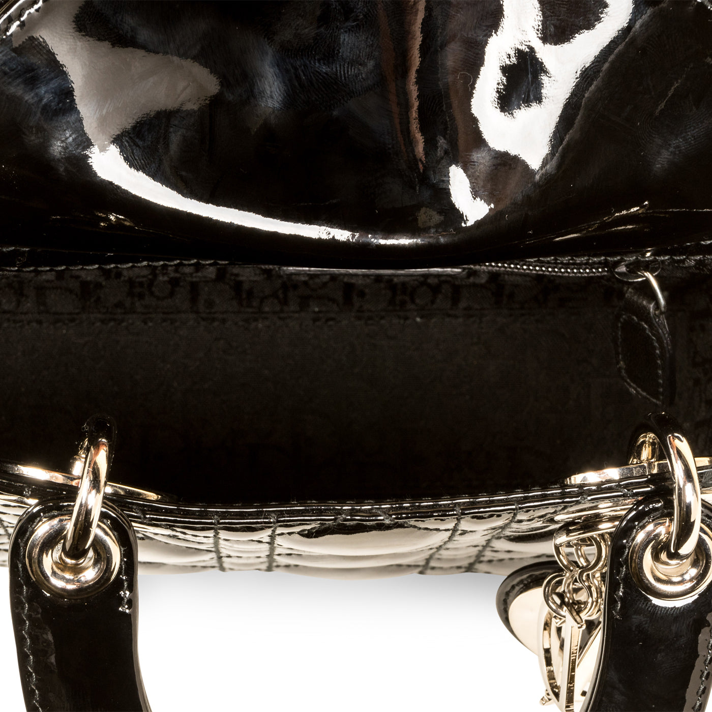 - Black carnage quilted patent leather