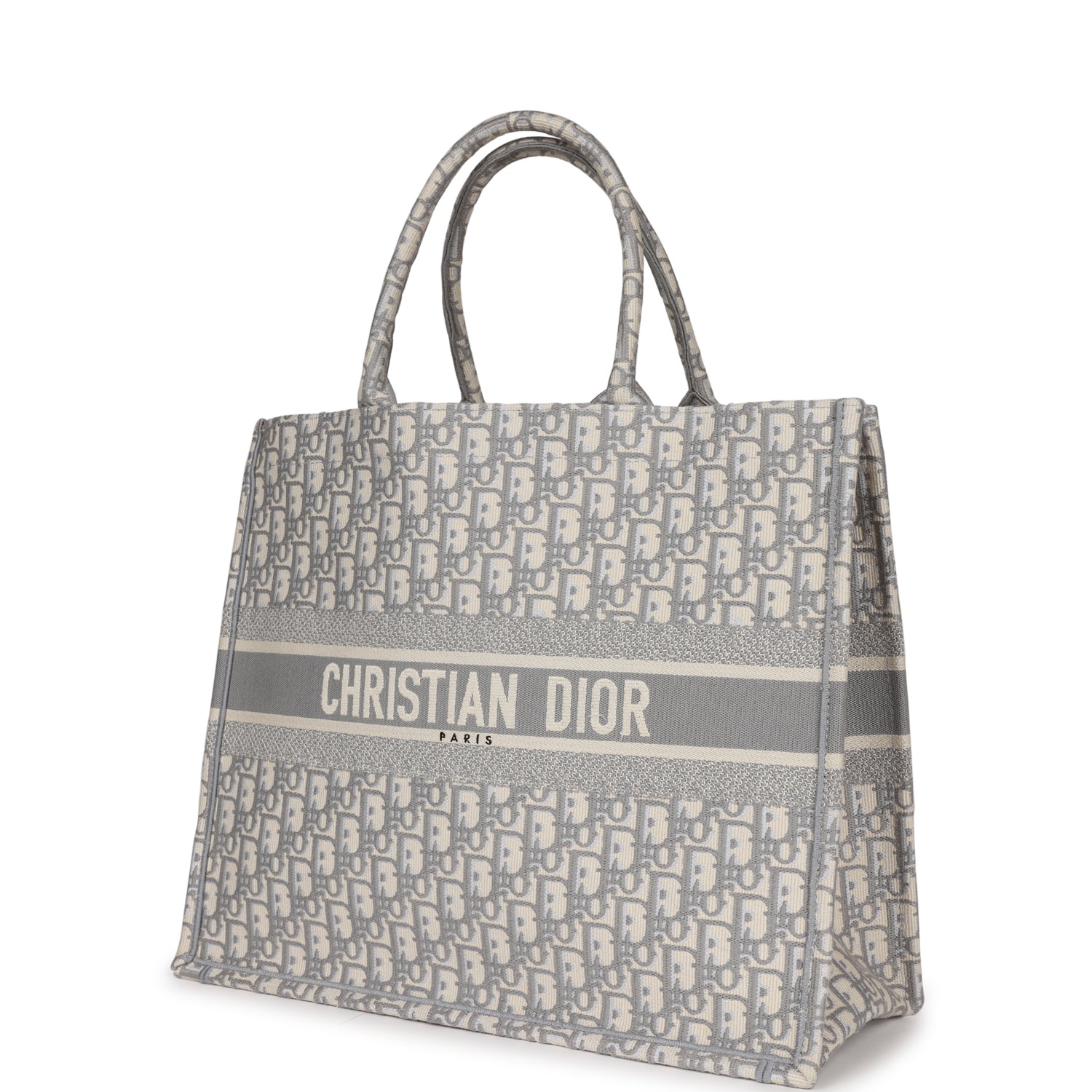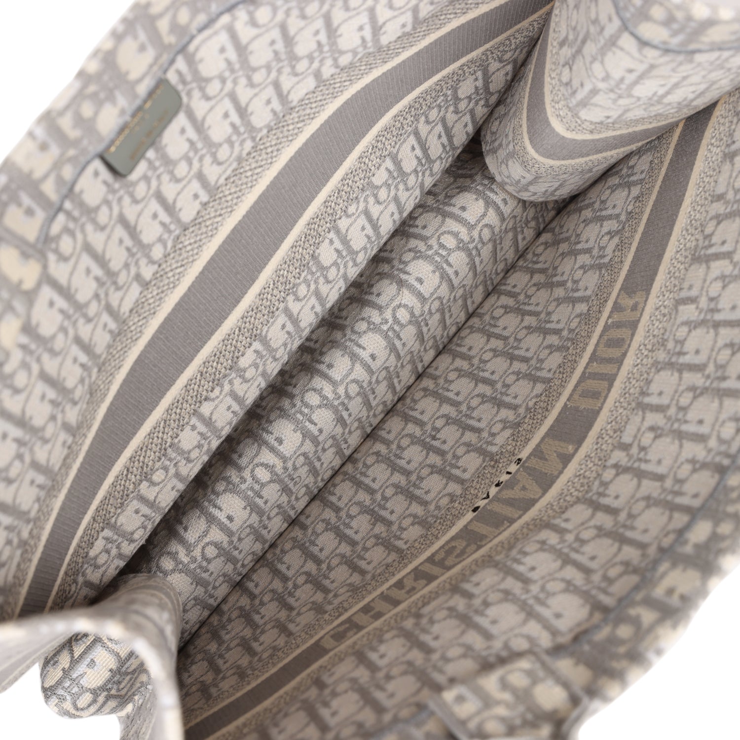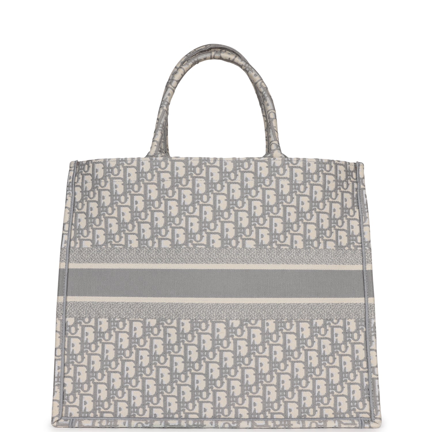Dior Large Book Tote Grey and White Dior Oblique Embroidery Canvas