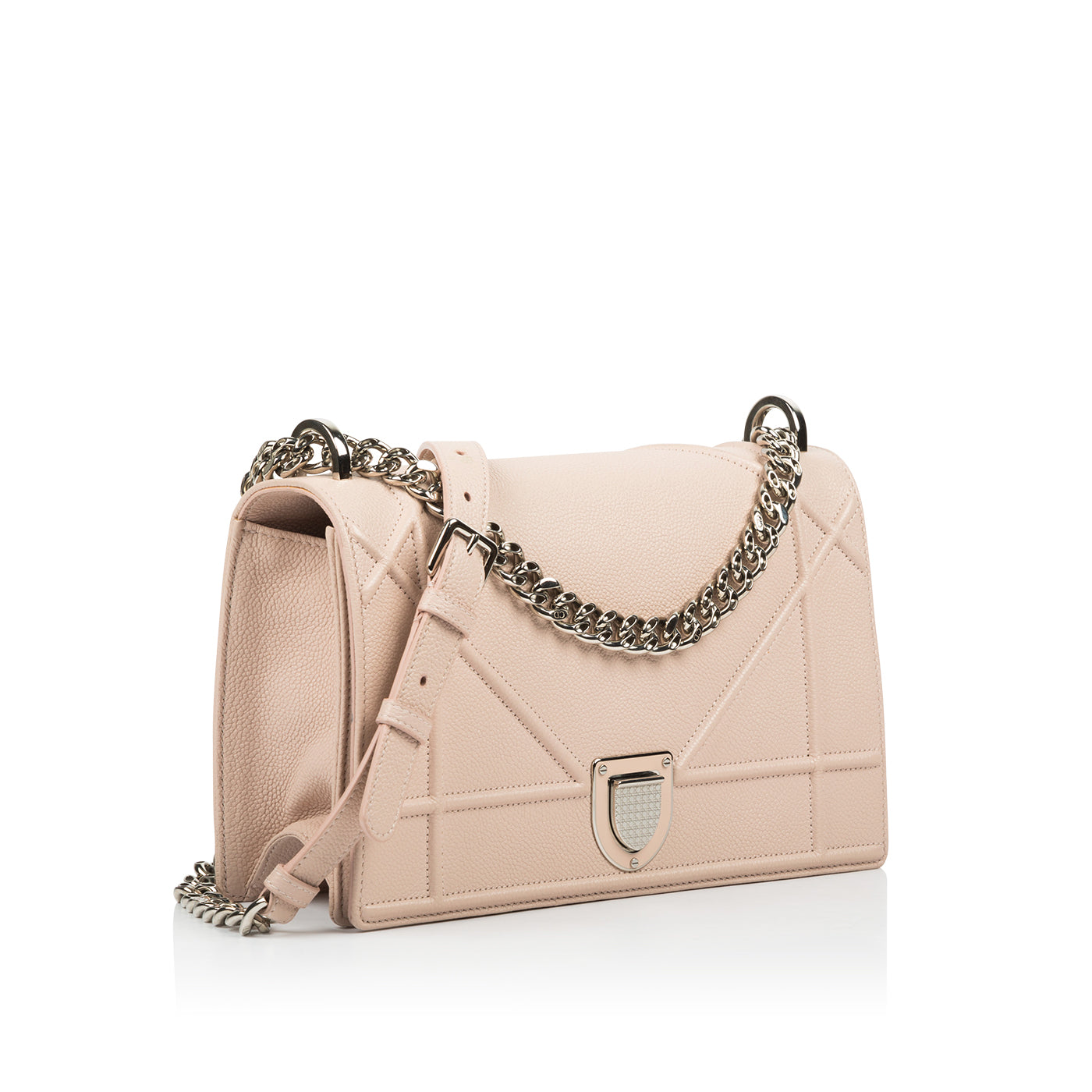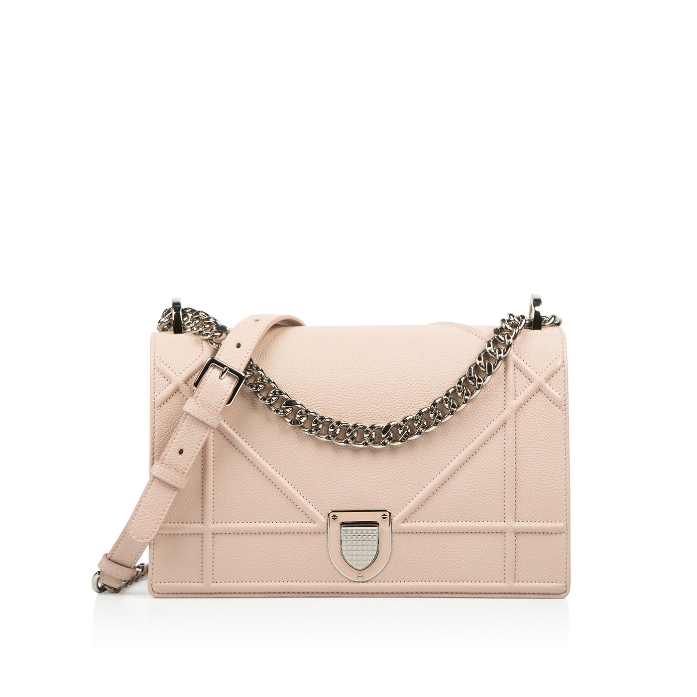 The Diorama debuted in Dior's Spring / Summer 2015 collection and took the world by storm upon its in-store release. The Diorama is one of the most luxurious bags from the past few years and with good reason. Carefully crafted in light pink, textured leather with romantic, silver tone hardware this piece is truly special and well worthy of any luxury handbag collection. Whether you dress this bag up or down, it remains the perfect compliment to any look. Carry all your essentials inside the spacious interior while remaining sleek, stylish and sophisticated. This is a timeless piece that became an instant classic, it will remain fashionable and desirable forever.