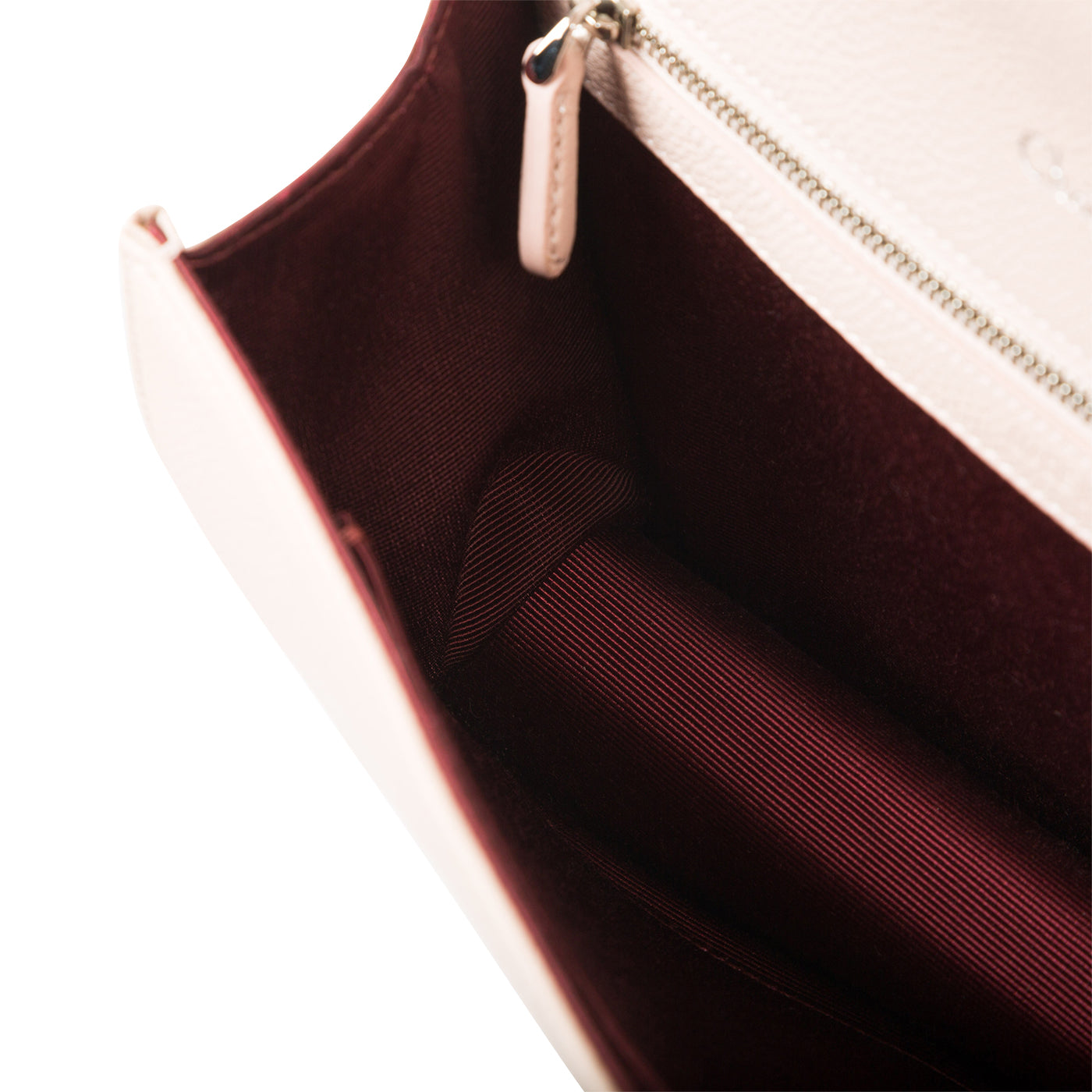 - Burgundy fabric lining