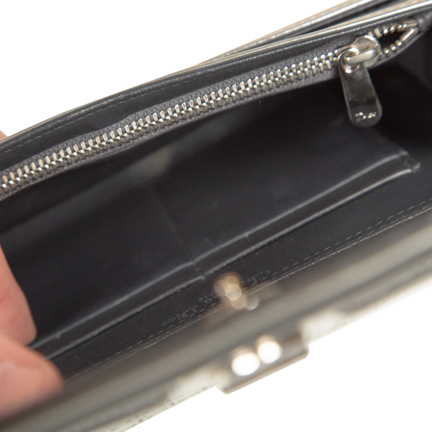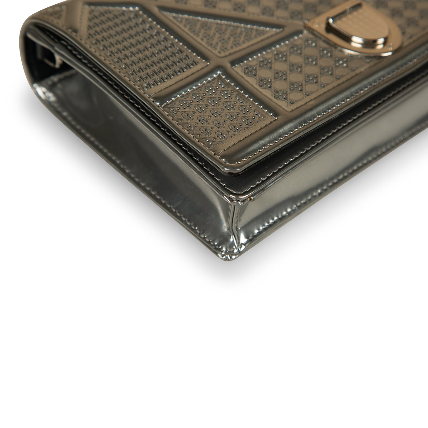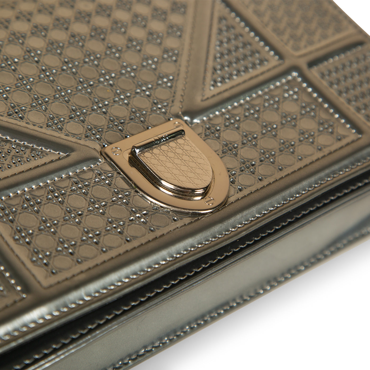 The definition of a statement piece, this Diorama is an absolute showstopper. Crafted from silver-tone metallic calfskin with an micro-cannage motif, it's difficult for heads not to turn when seeing this bag pass down the street. The Diorama has become a timeless piece from Dior's accessories line and is sure to never go out of style. The ideal complement to any outfit you may have in your wardrobe, this particular Diorama can easily take you from day to night. For the woman who wants to add a little bit of drama to her life by carrying some shimmer with her wherever she goes, this Diorama is a well worthy addition to any luxury handbag collection. A trust must have for any lover of timeless pieces and a special spot for Dior.