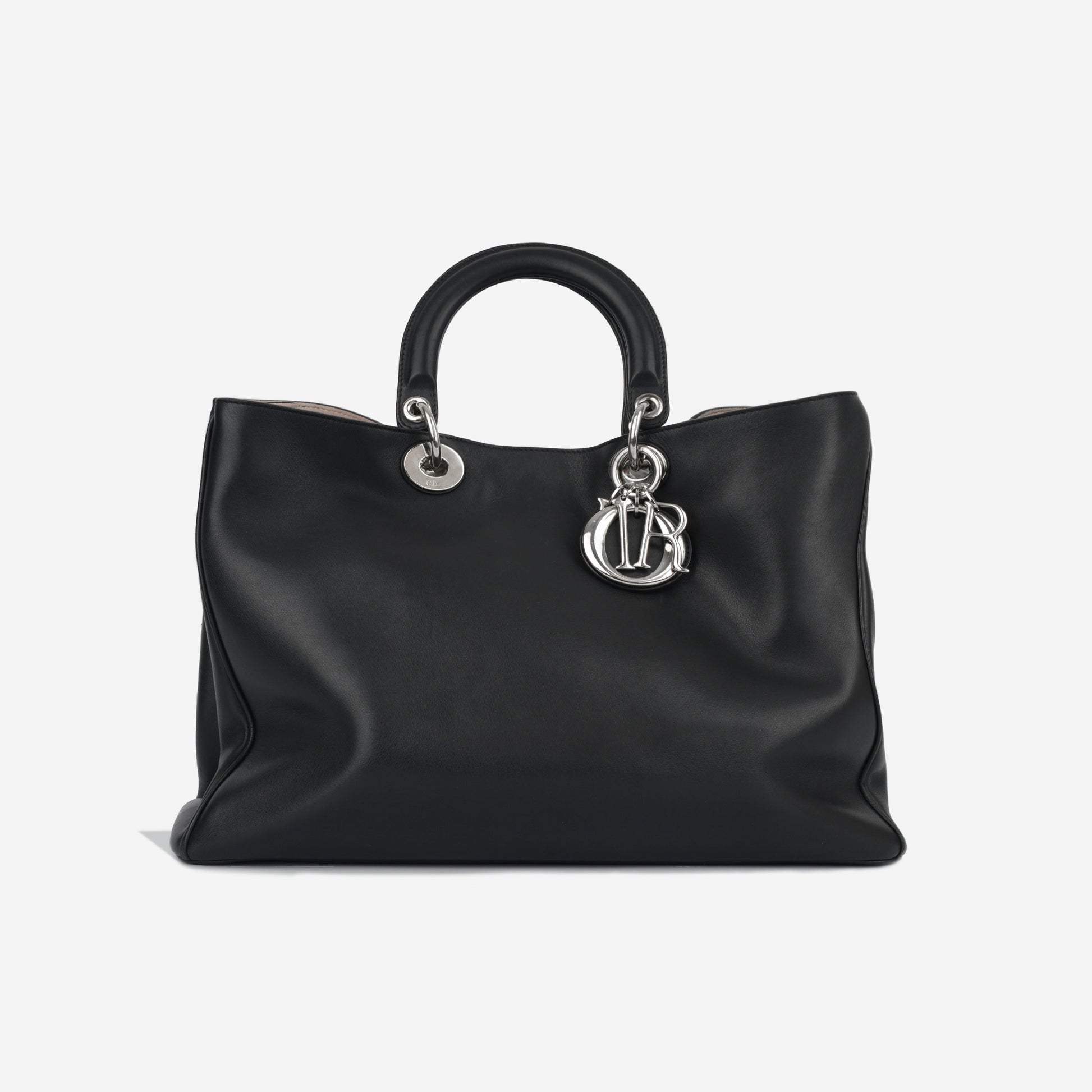 This Diorissimo tote features a stiff top handle, the D.I.O.R. signature charms and a soft interior leather base that can fit all of your daily essentials. The supple silhouette can an alternative to the structured Lady Dior.