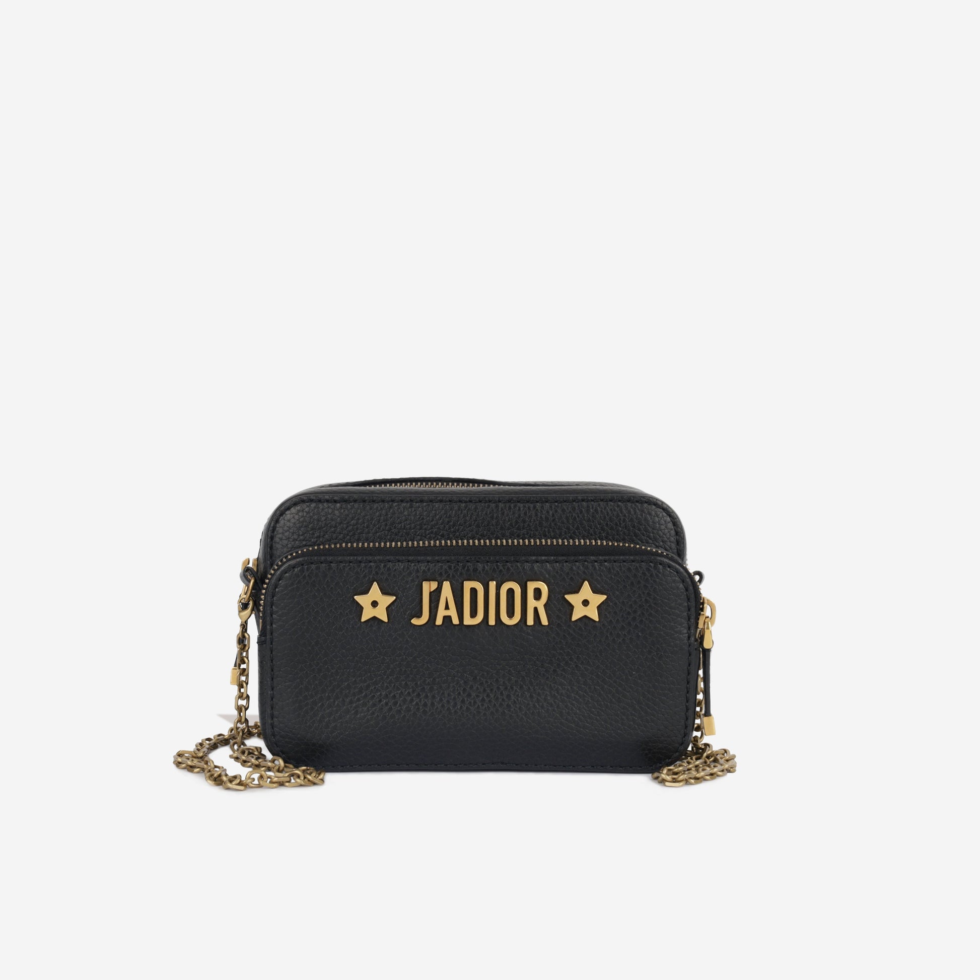 Under the creative direction of Maria Grazia Chiuri, Dior presents their ultimate It-Girl bag. The stunning, signature J’Adior Camera Case Clutch wiht Chain in black calfskin. Edgy but feminine, classic but contemporary, the J'adior bag is a well-worthy addition to any luxury handbag collection.