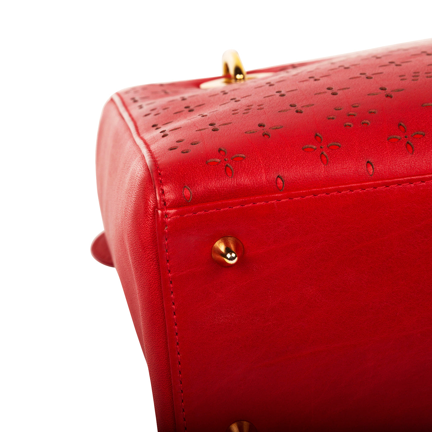 A timeless work of art, this Lazercut Lady Dior bag is playful and eye-catching variation of an absolute classic from the French Powerhouse of fashion. Meticulously crafted by hand, this Medium-sized red bag, featuring small flower embossed motifs throughout, is a necessary addition to any luxury handbag collection. The Lady Dior bag, also known as the Princess bag, is undoubtedly Dior’s most iconic bag. The bag is named after Princess Diana, who skyrocketed its popularity ever since she was first gifted the bag in the Mid-90's.