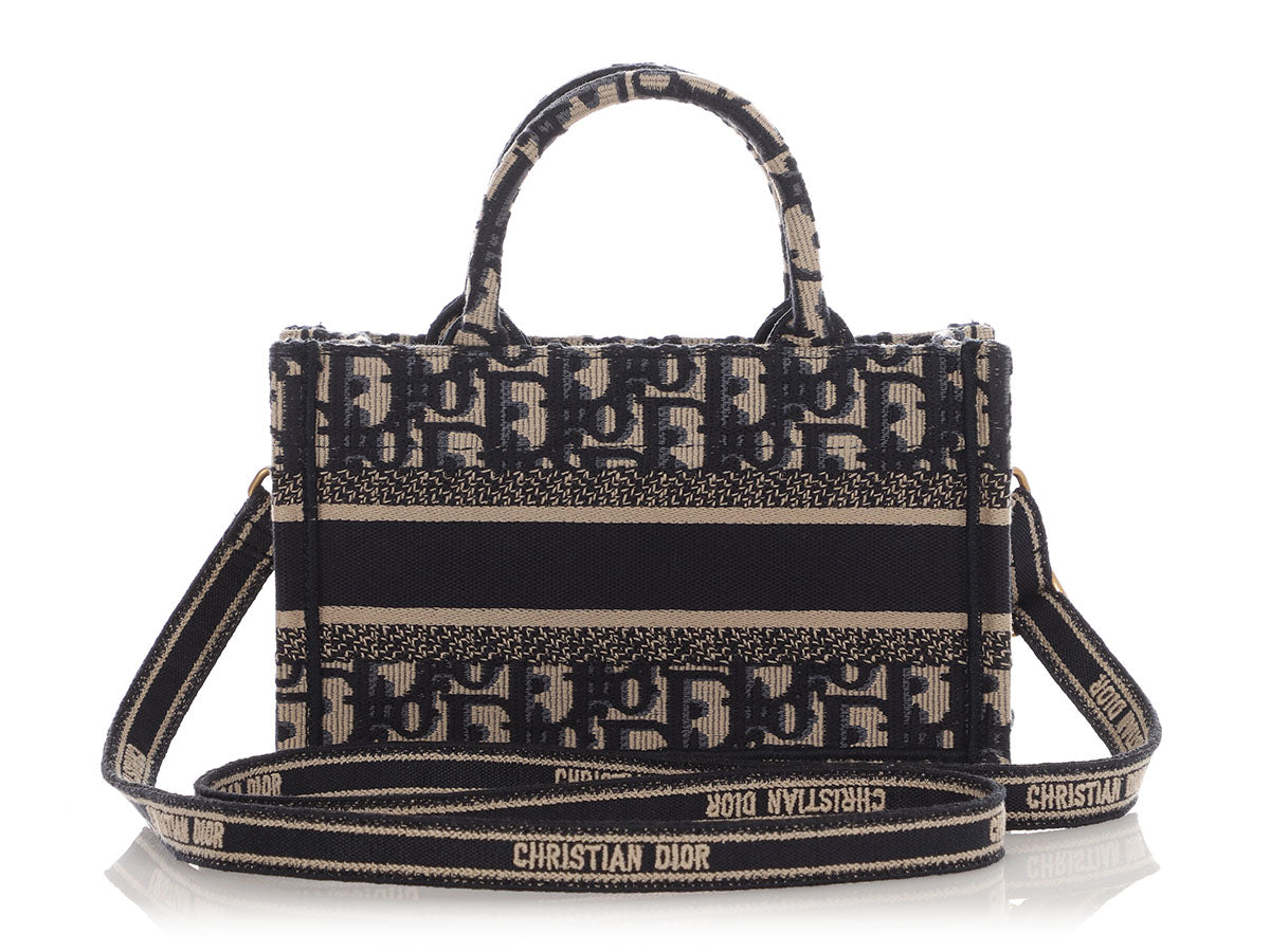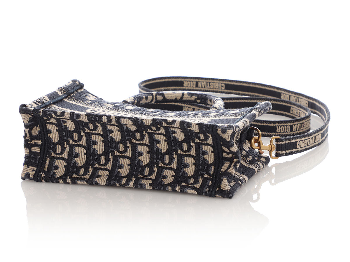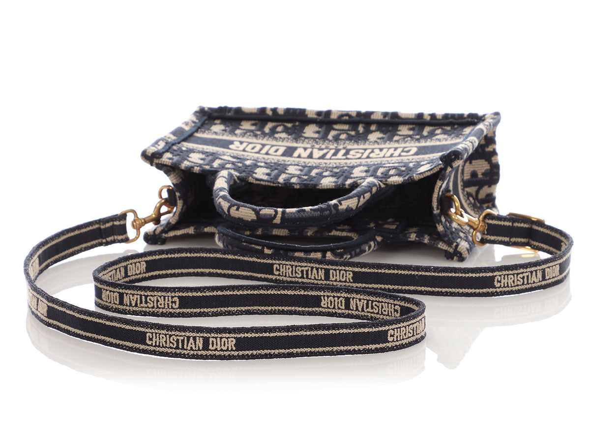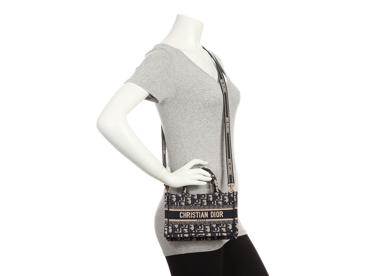The smallest of the Book Tote siblings, Dior’s Mini Blue Oblique Book Tote packs a punch of iconic style in a perfectly petite size! Made of thick embroidered canvas with the signature navy blue Oblique motif, it features top handles with a 2.75-inch drop and an adjustable, detachable shoulder strap embroidered with “Christian Dior” and shown with a 23-inch drop. The open top offers easy access to the unlined, pocketless interior, while brushed gold hardware adds a subtle glow. In pristine condition with a dustbag, tags, and card, it has some fading on the inner heat stamp. Whether carried by hand or slung crossbody, this adorable mini tote makes a major statement!