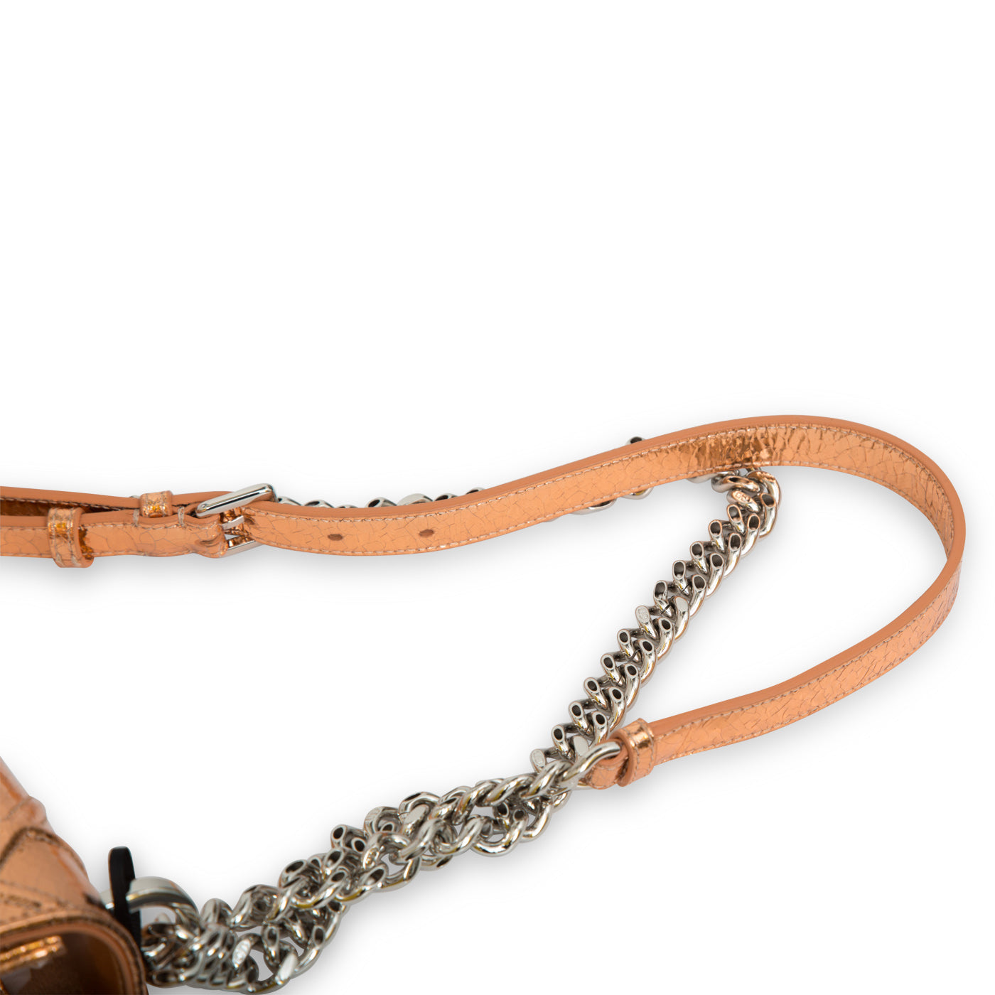 This Diorama bag is from the Fall/Winter 2016 collection and is a unique and stunning piece. The exterior is a metallic, foil-like material coated in metallic bronze finish. The stunning copper-style finish is complimented perfectly by the silver tone hardware on this magical piece by Dior. This bag is glamorous and perfect to wear for a formal evening or dinner with friends.