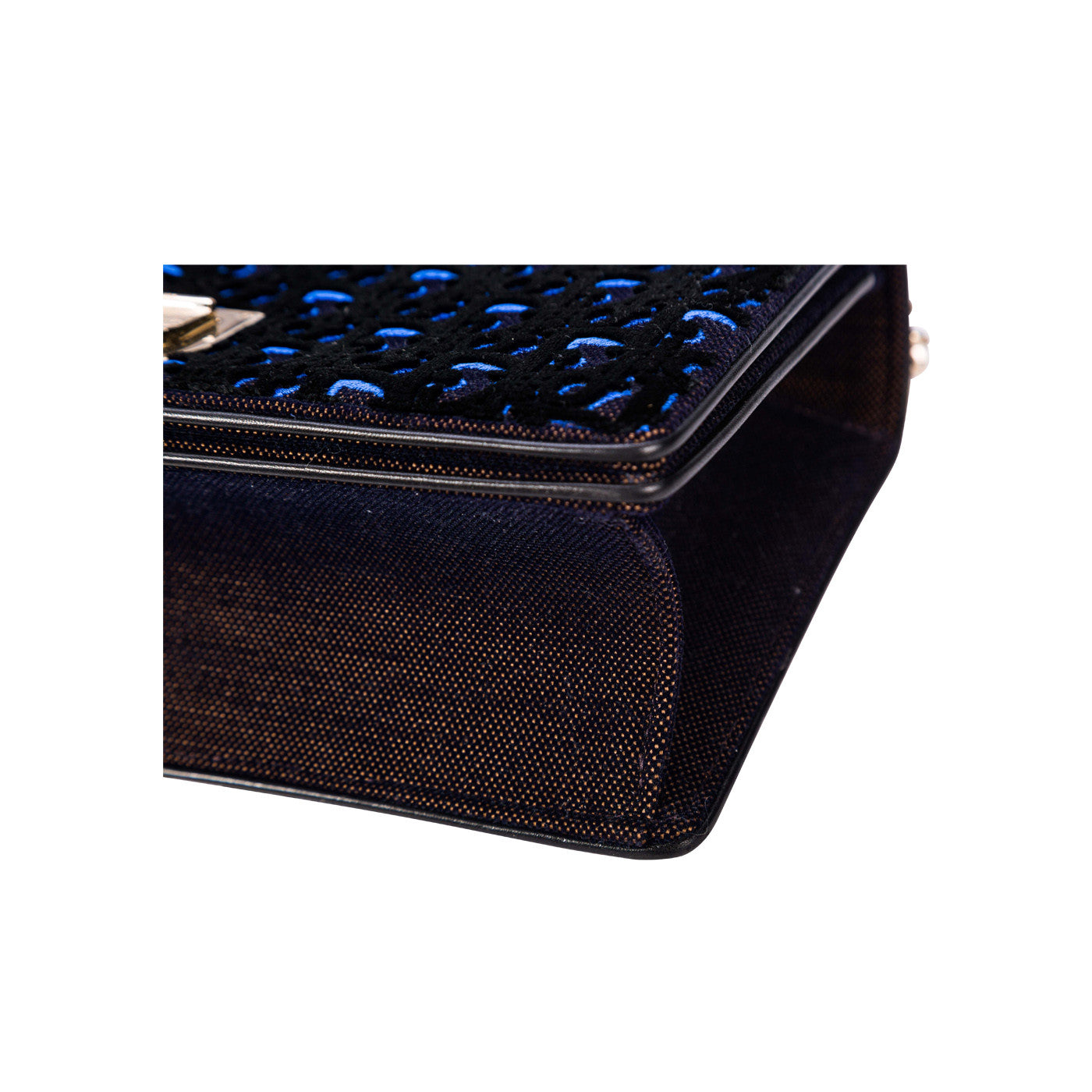 This Diorama bag is from the Fall/Winter 2016 collection and is a unique and stunning piece. The exterior is canvas and covered in a velvet monogram. The striking blue stitching stands out behind the black velvet and is perfectly complimented by the gold chain strap and gold closure. This bag is glamorous and perfect to wear for a formal evening or dinner with friends. As this bag is no longer available, don’t miss your chance to own it!