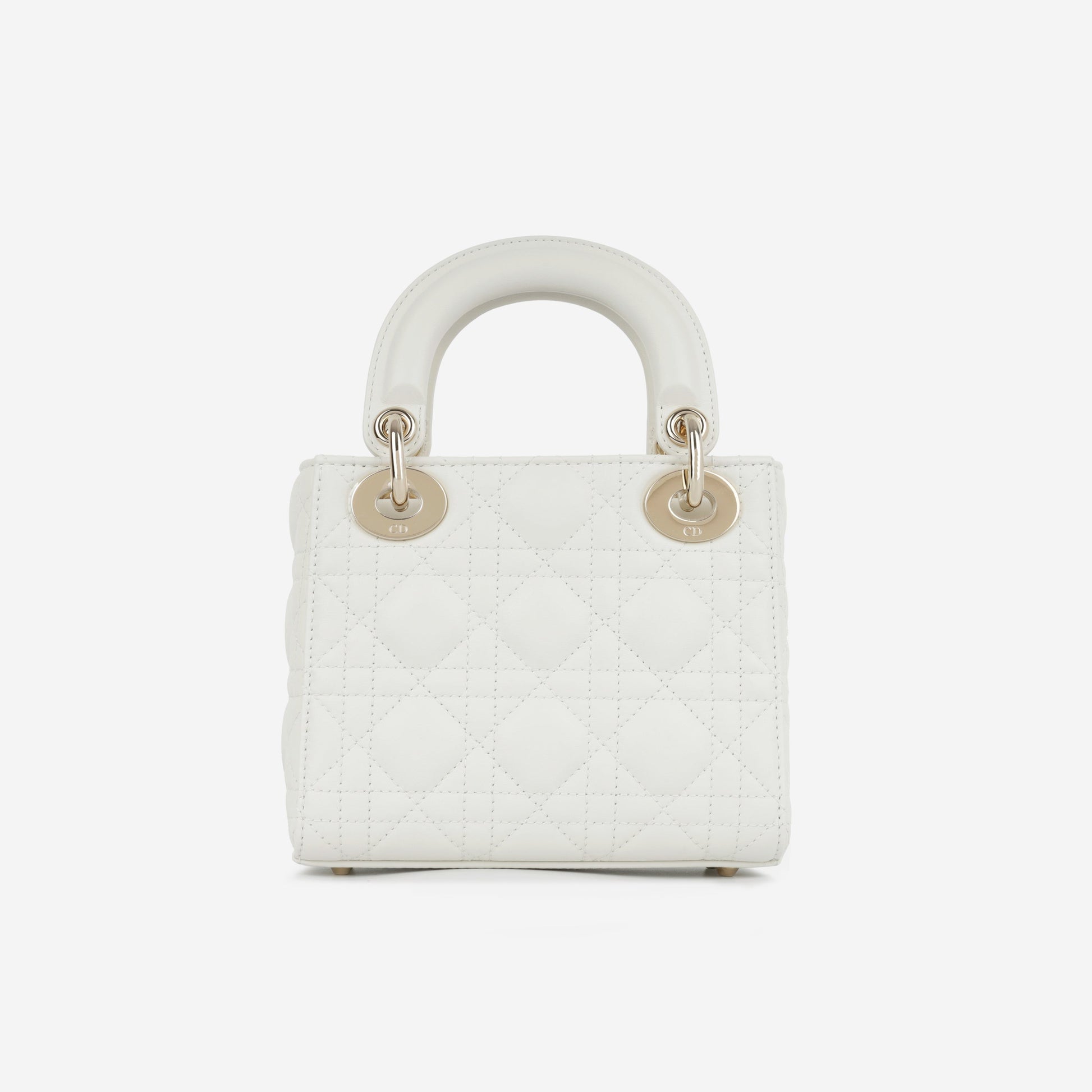 Embrace the epitome of elegance and beauty with the Lady Dior bag, a standout piece from the Dioramour capsule collection. This sleek and refined bag showcases the timeless craftsmanship of the House of Dior. Crafted in luxurious white lambskin, it features the signature Cannage stitching that creates an instantly recognisable quilted texture.