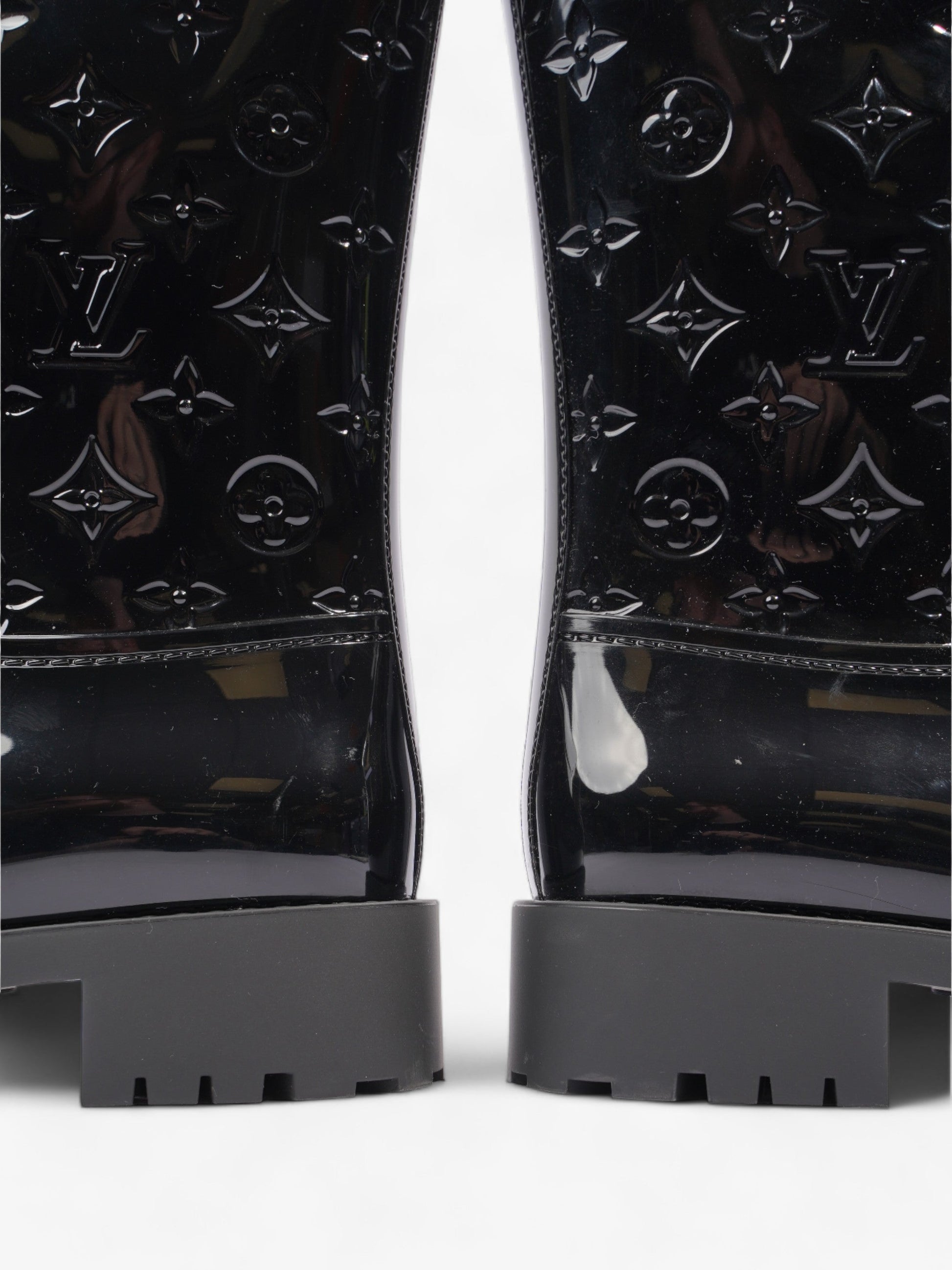 Louis Vuitton Drops Wellington Boots Black Patent Leather EU 38 UK 5