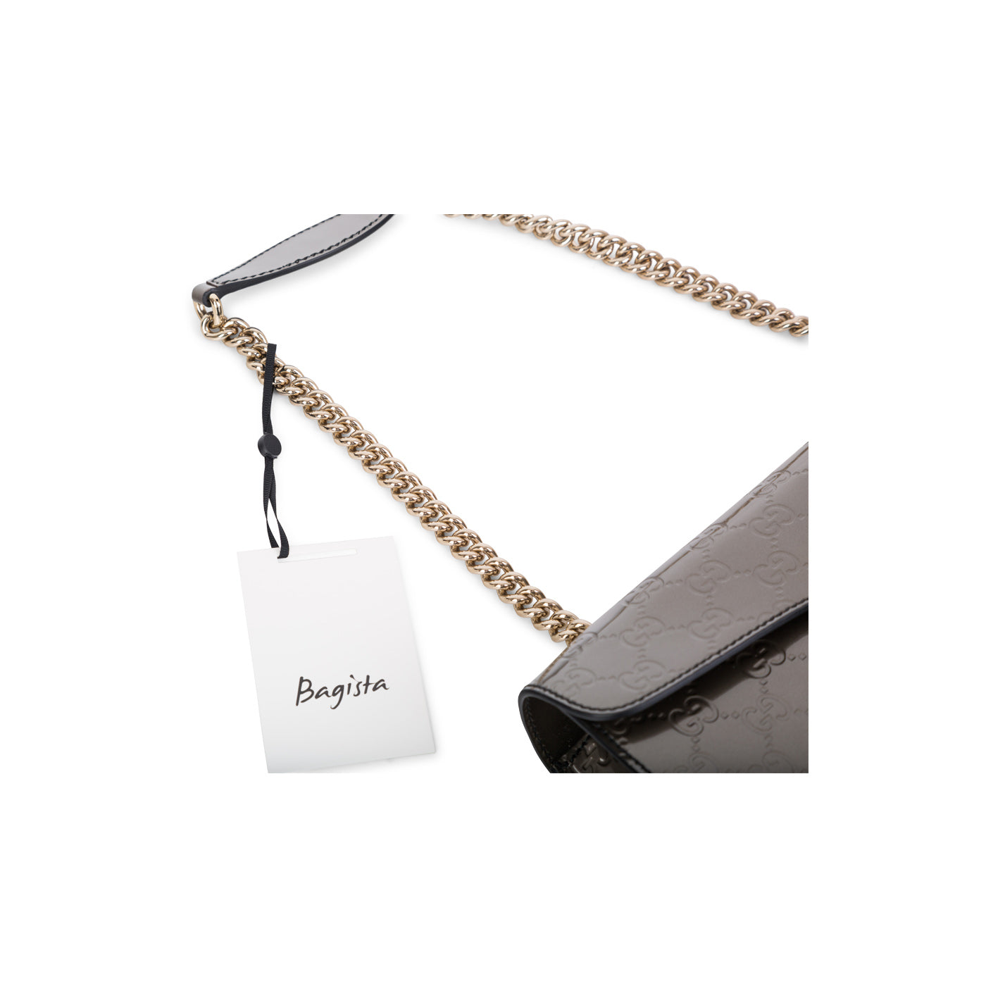 The Emily Guccissima is the perfect bag for the city woman. The beautifully constructed Emily Guccissima shoulder bag features a single silver�hardware chain strap that can be worn on the shoulder or carried as a handheld.�The bag is detailed with Gucci�s signature trademark logo all round the body, in addition to the iconic Gucci horse-buckle,�giving�it a very vintage and prestige feel.
