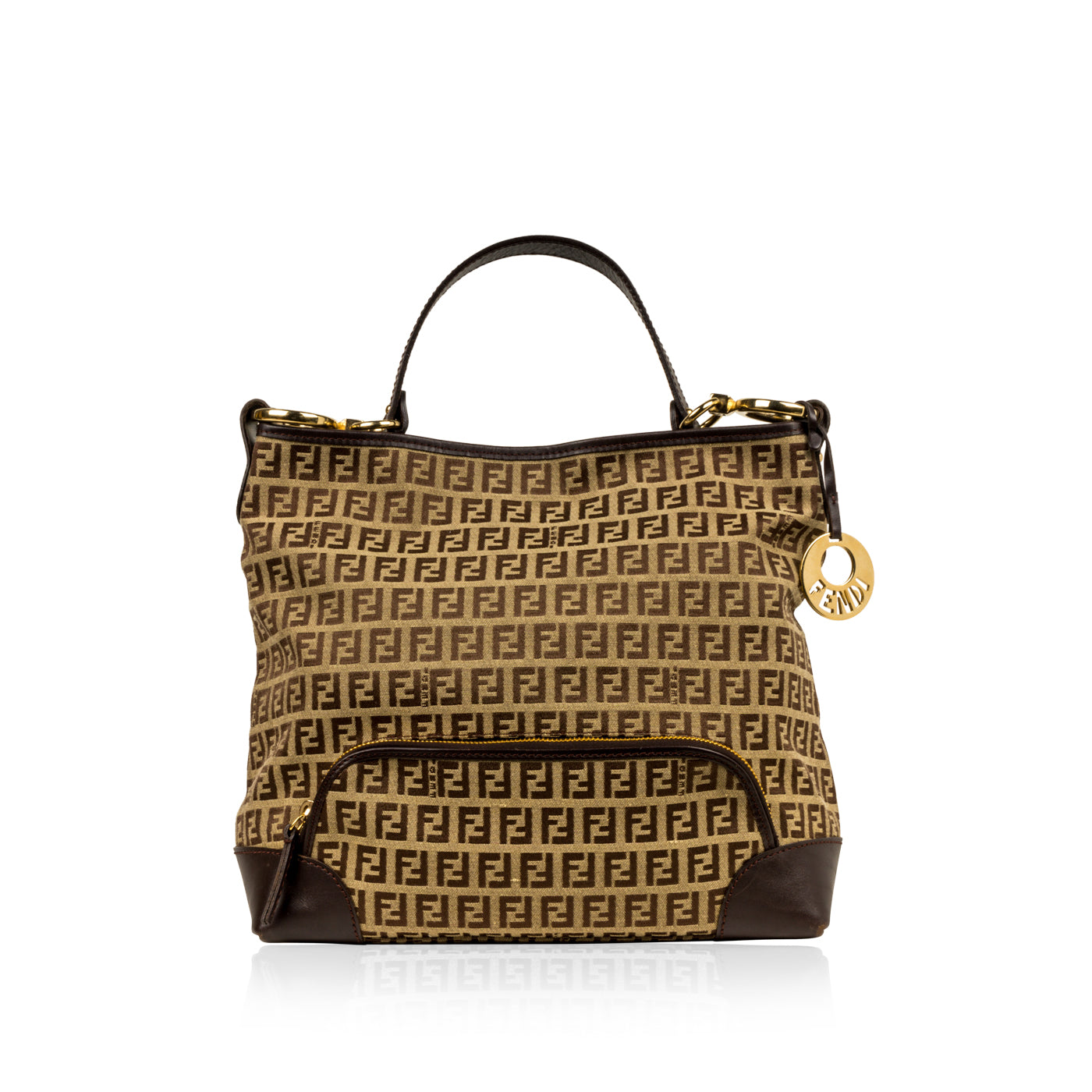 - Gold tone Fendi logo charm