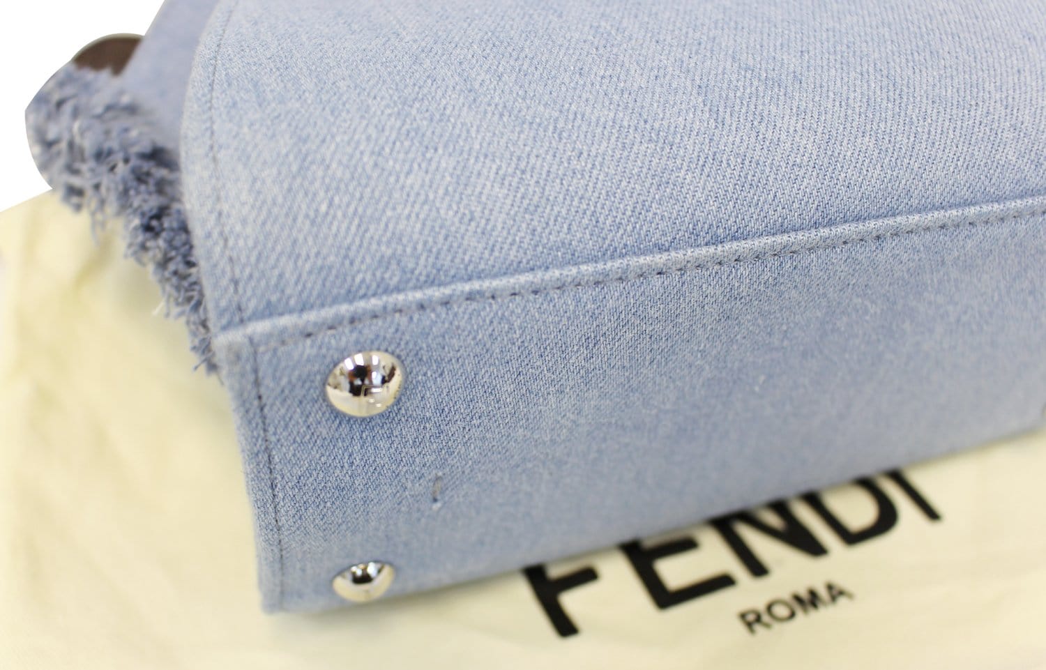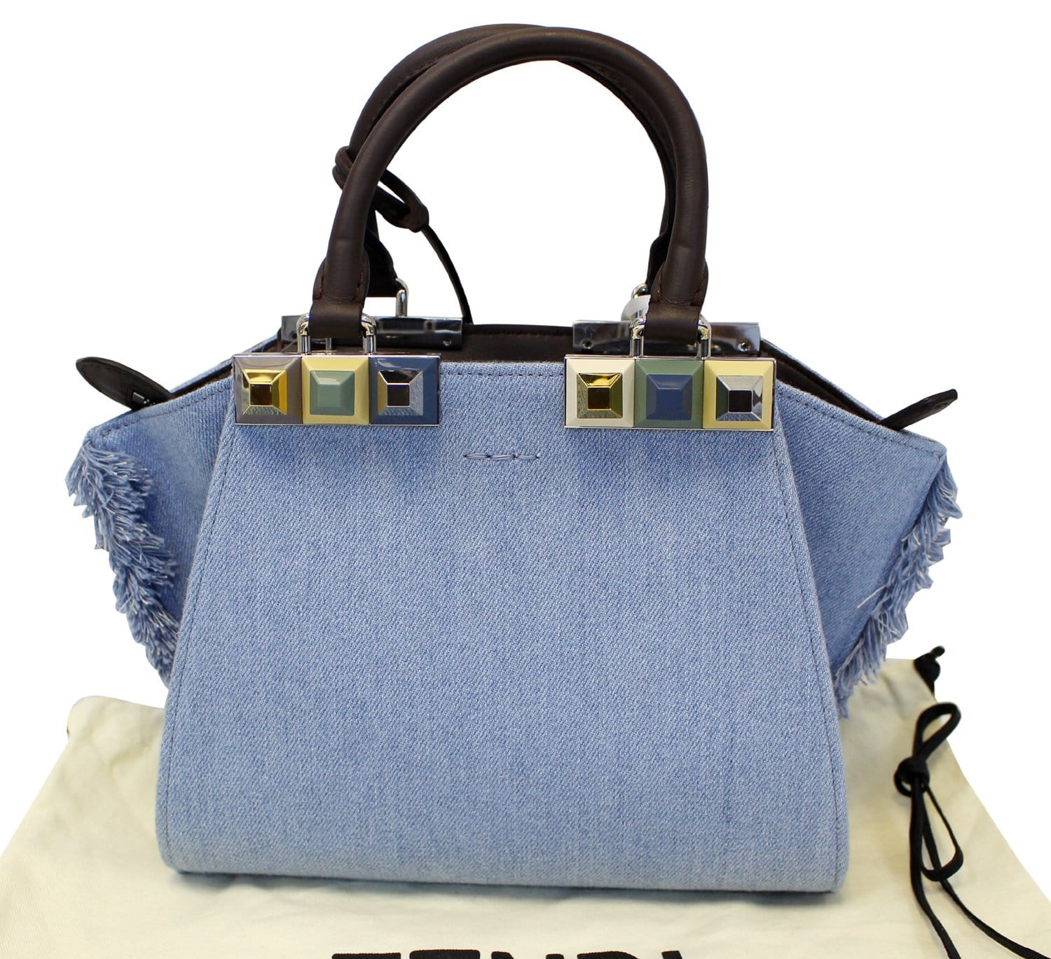 FENDI 3 Jour Mini Fringed Denim Studs Tote Crossbody Bag