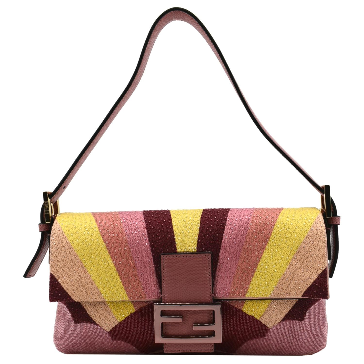 FENDI Baguette 1997 Satin Leather Shoulder Satchel Bag Multicolor