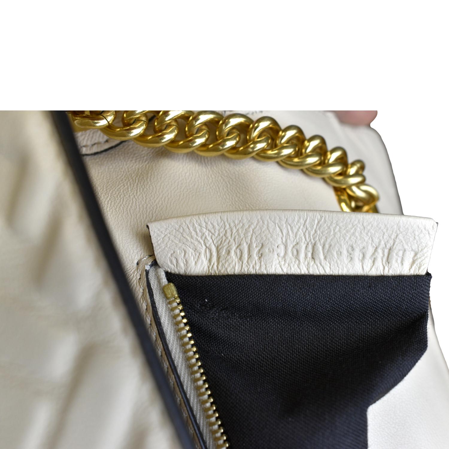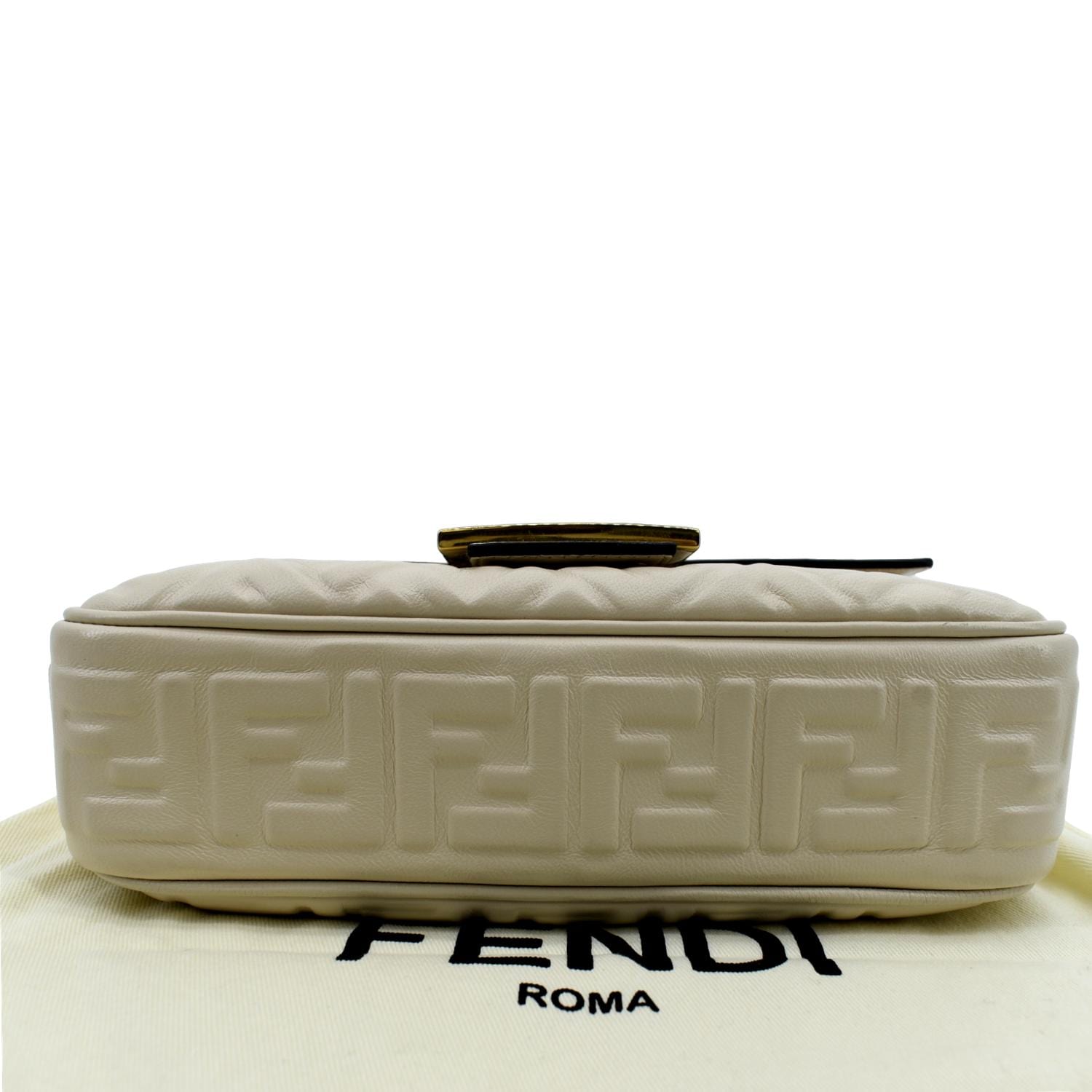 FENDI Baguette Leather Chain Shoulder Bag Light Beige