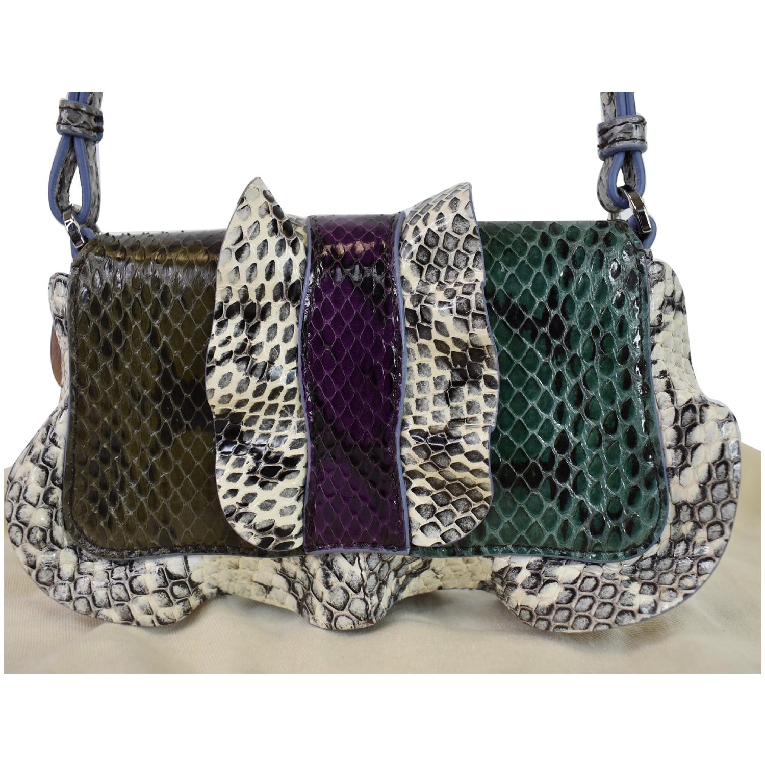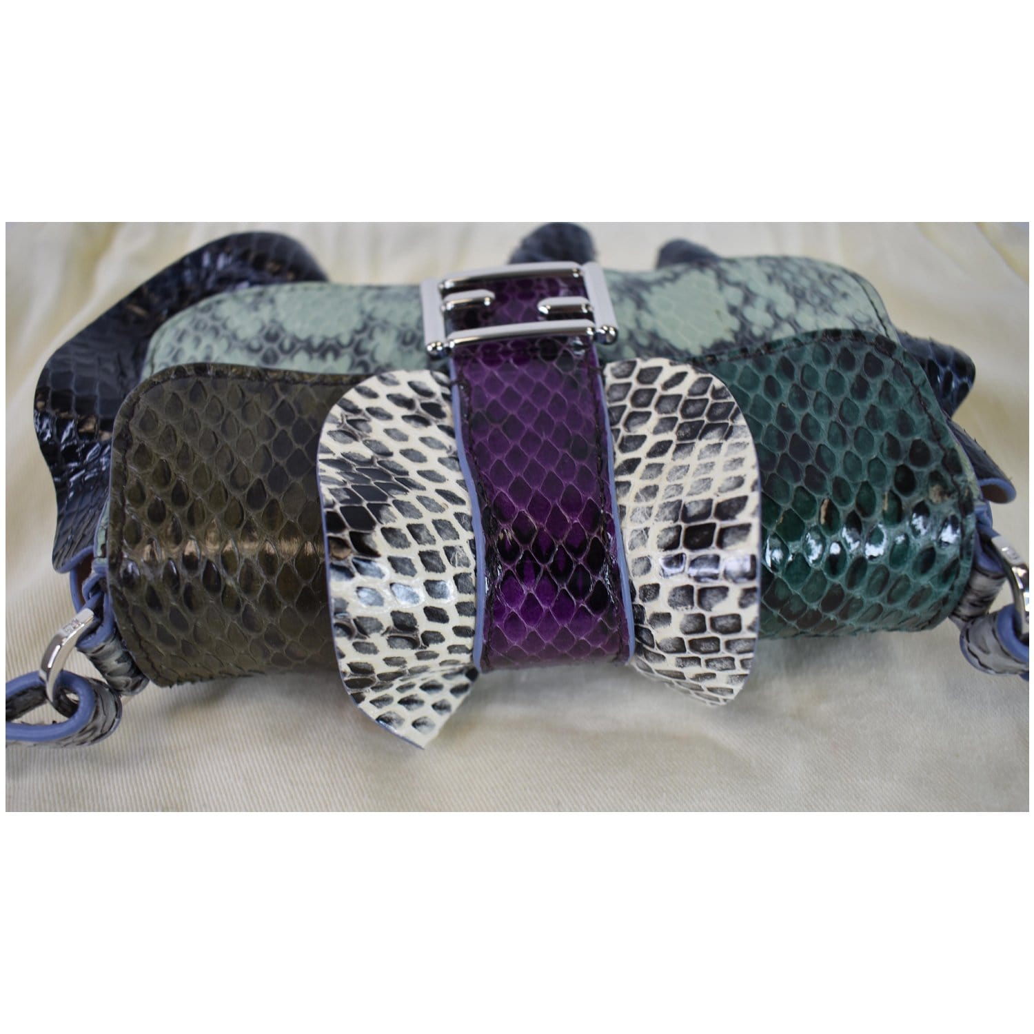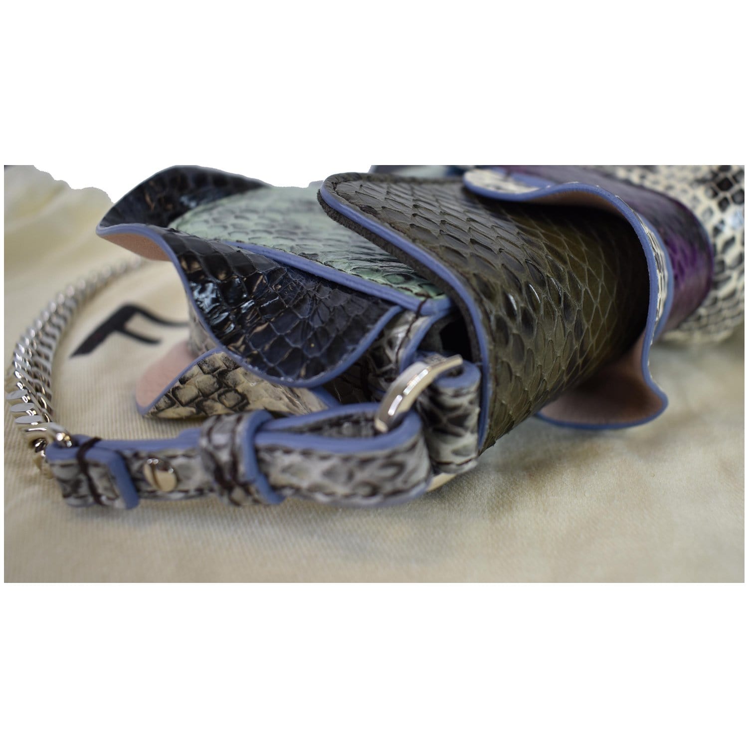 FENDI Baguette MicroWave Python Leather Chain Crossbody Bag Multi
