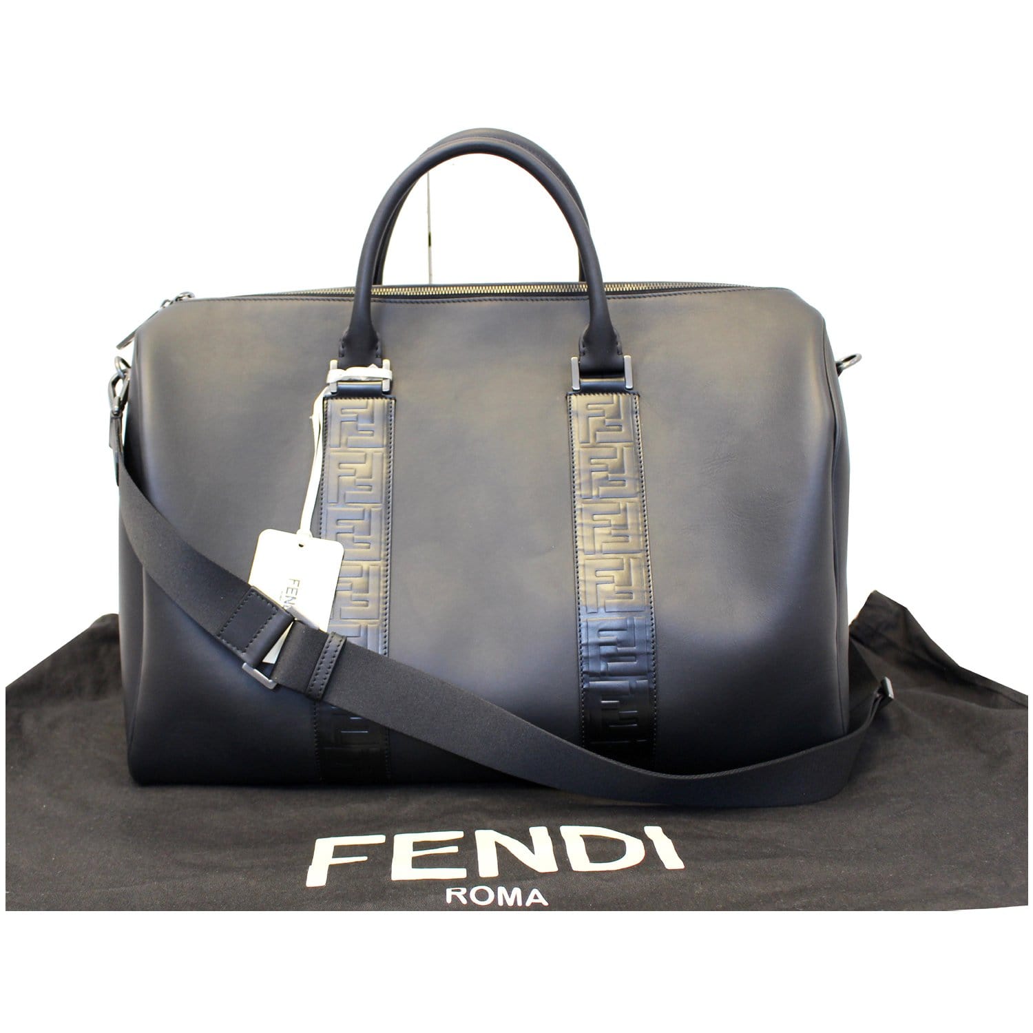 FENDI Black Leather Weekender Satchel Shoulder Bag