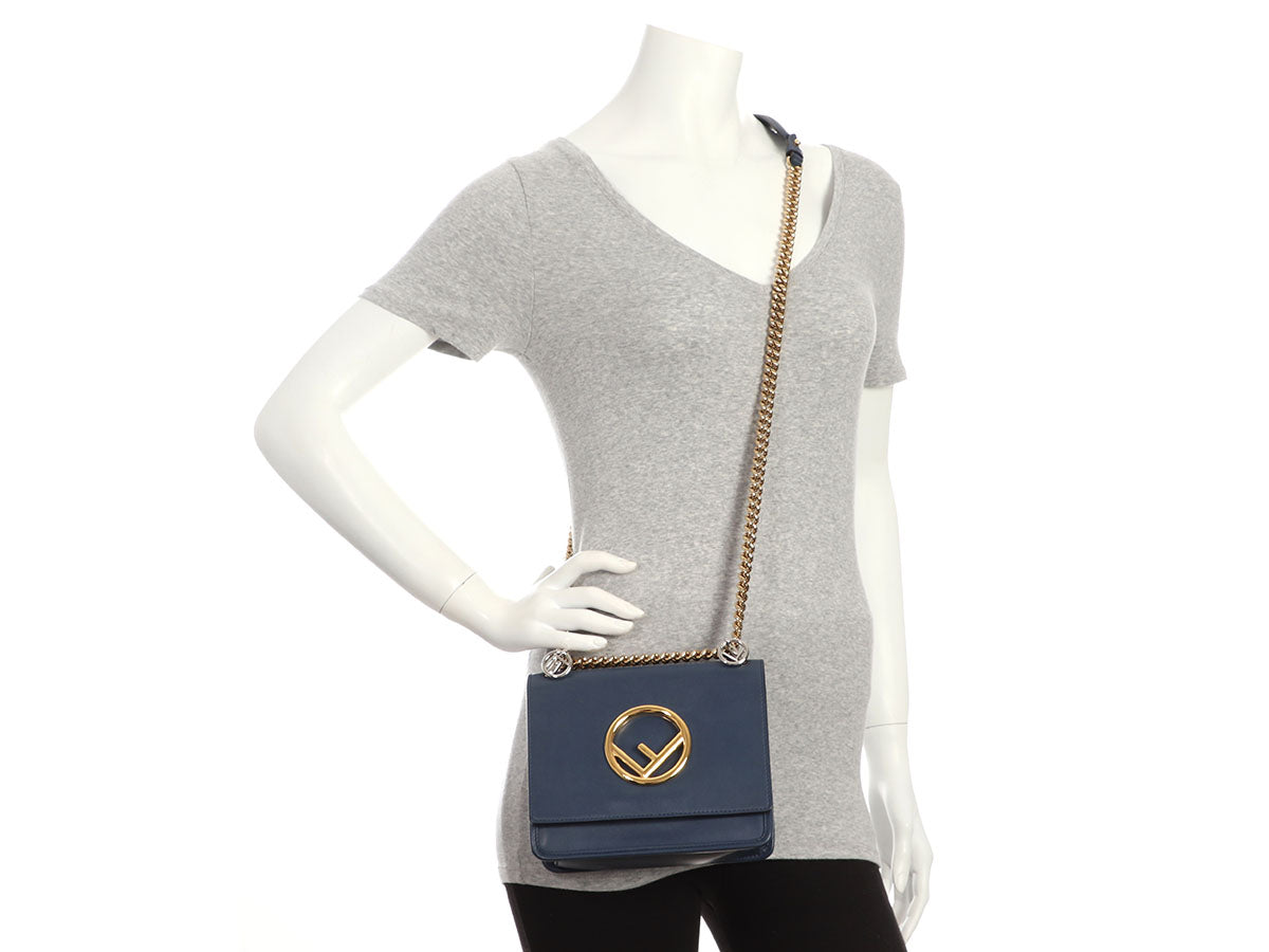 Fendi Small Blue Kan F Chain Shoulder Bag