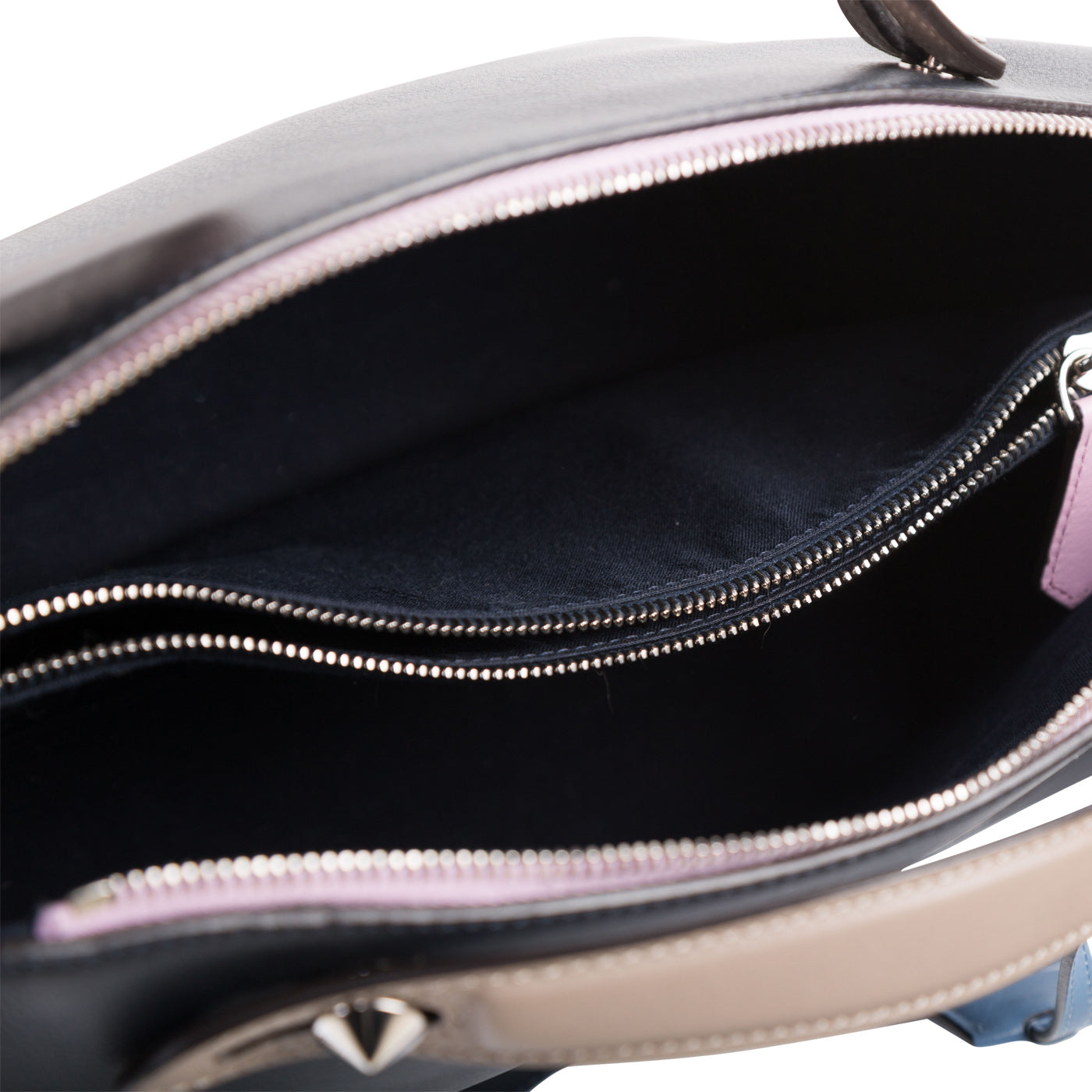 Fendi presents its By the Way bag - a perfect option for a woman with a love for subtle colour, looking for practicality, and style. With in a smooth leather navy body, pink zip close, nude top handles, and light blue Fendi tag - the By the Way offers the best of both worlds when it comes to function and fashion. It's fun but sophisticated appearance makes it easy to accessorise with any casual look. Featuring silver-tone hardware, a black, leather detachable shoulder strap, two spacious compartments, and a large interior pocket, you can easily carry all your every day essentials while making subtle statement.