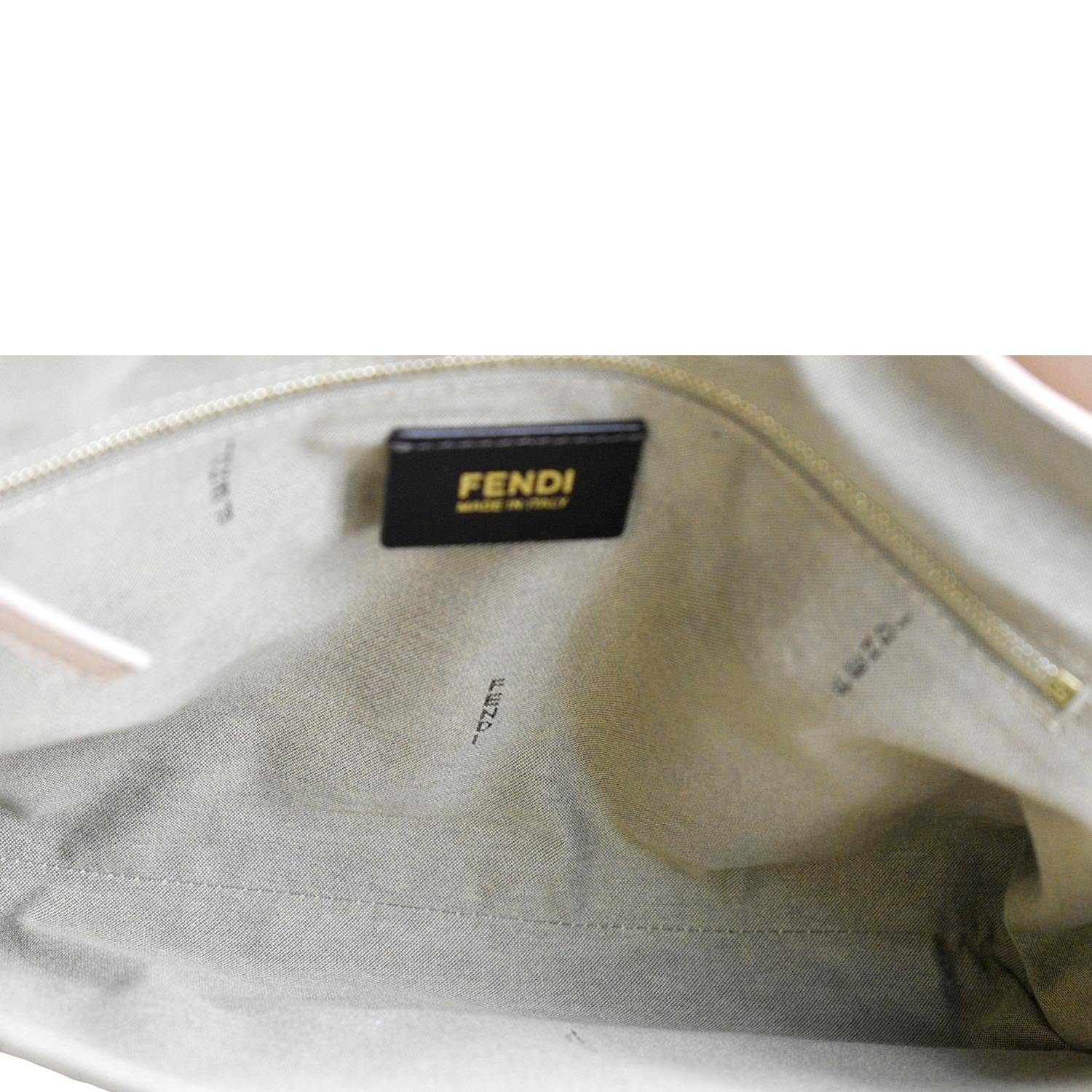 FENDI Claudia Pequin Embossed Leather Crossbody Bag Beige