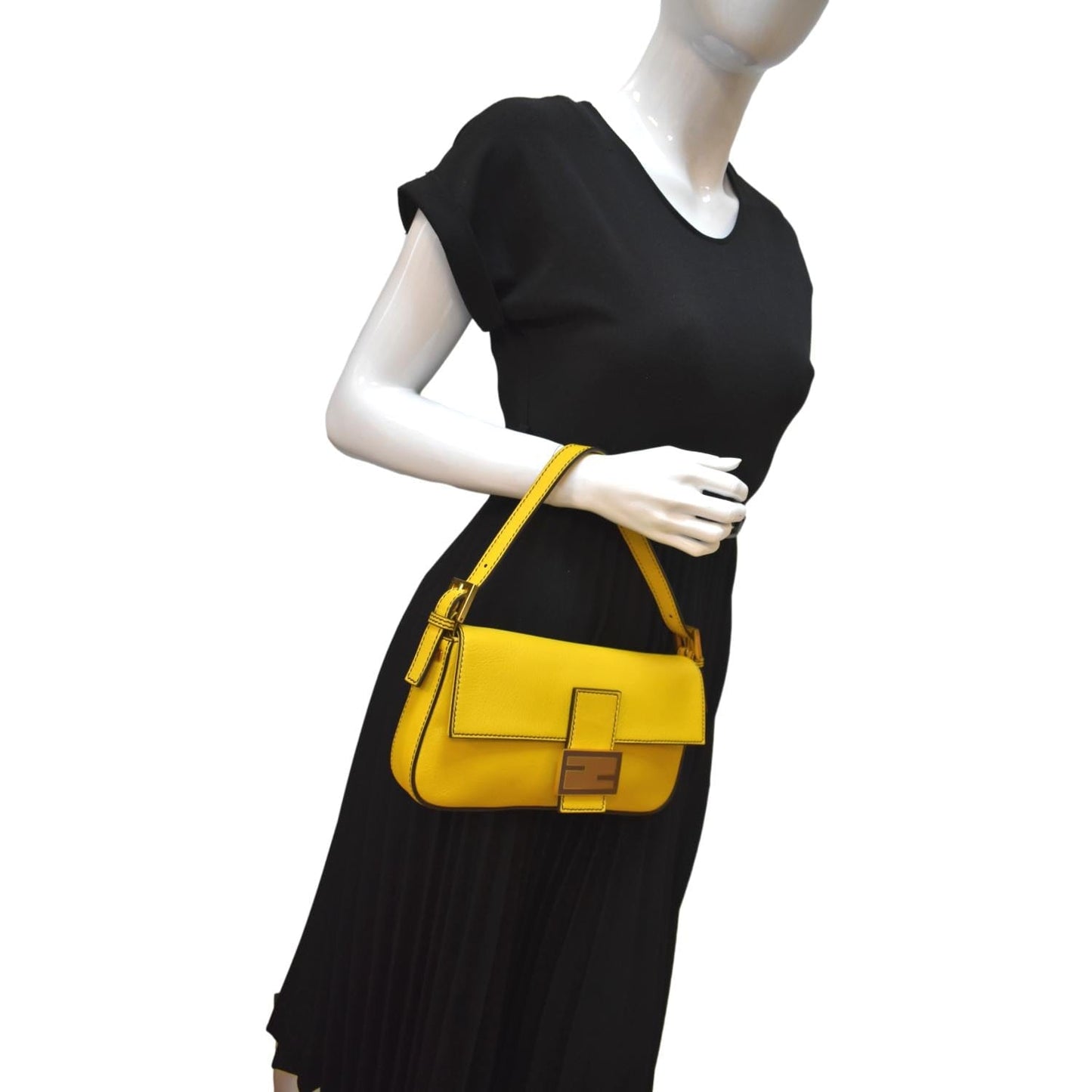 FENDI Convertable Baguette Leather Crossbody Bag Yellow