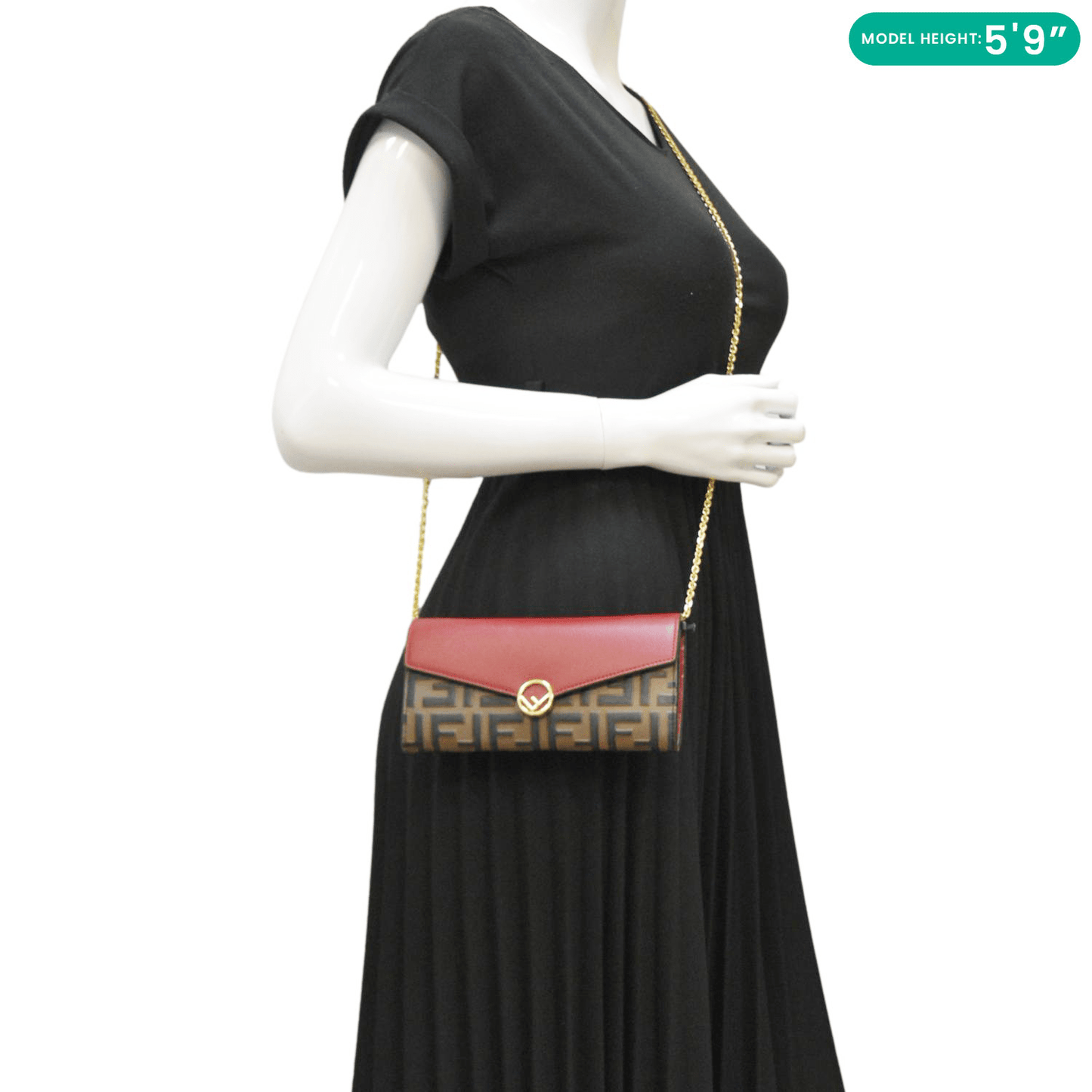 The Fendi F is Fendi Leather Chain Wallet in Red is a chic and versatile accessory. Crafted from high-quality leather, it features the iconic Fendi logo and a convenient chain strap, adding a stylish pop of color to any outfit.