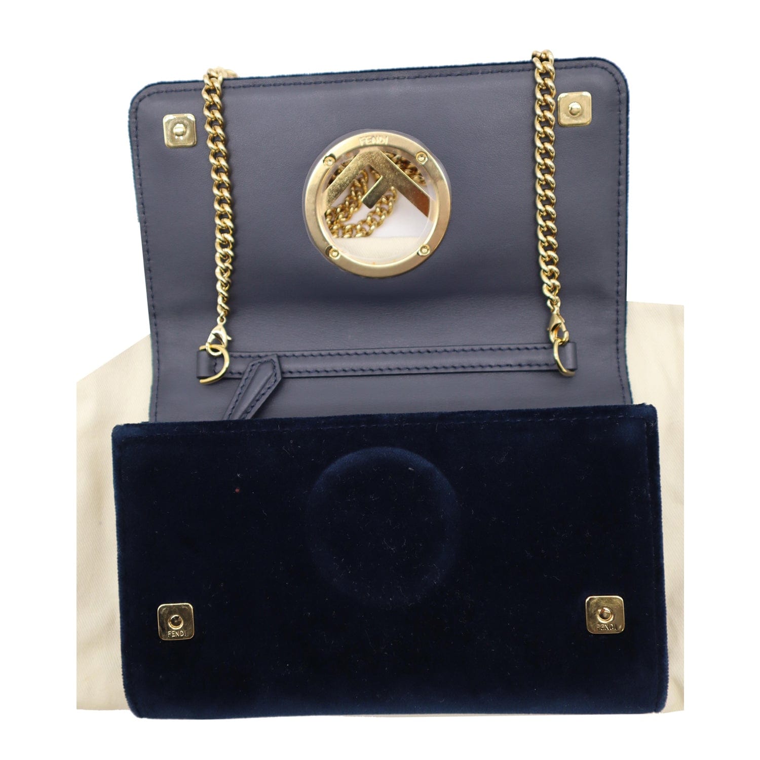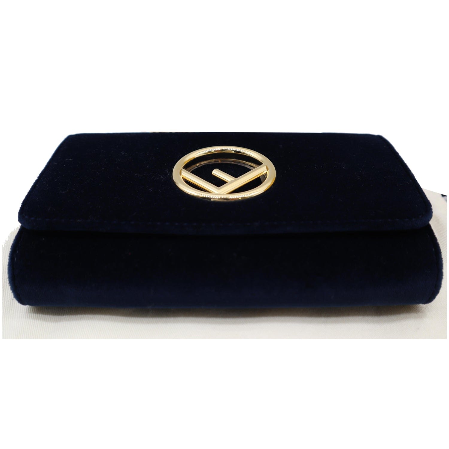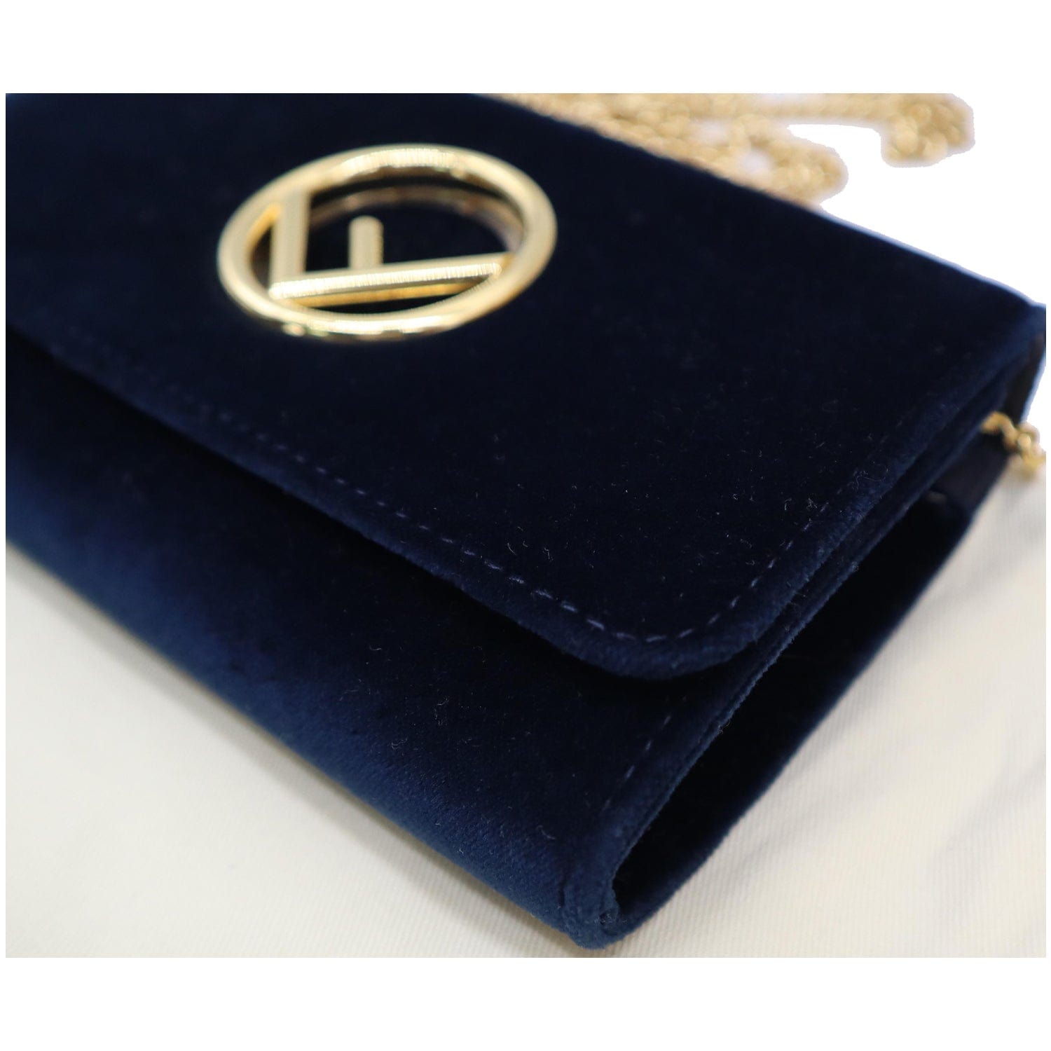 FENDI F Logo Velvet Wallet On Chain Crossbody Bag Dark Blue