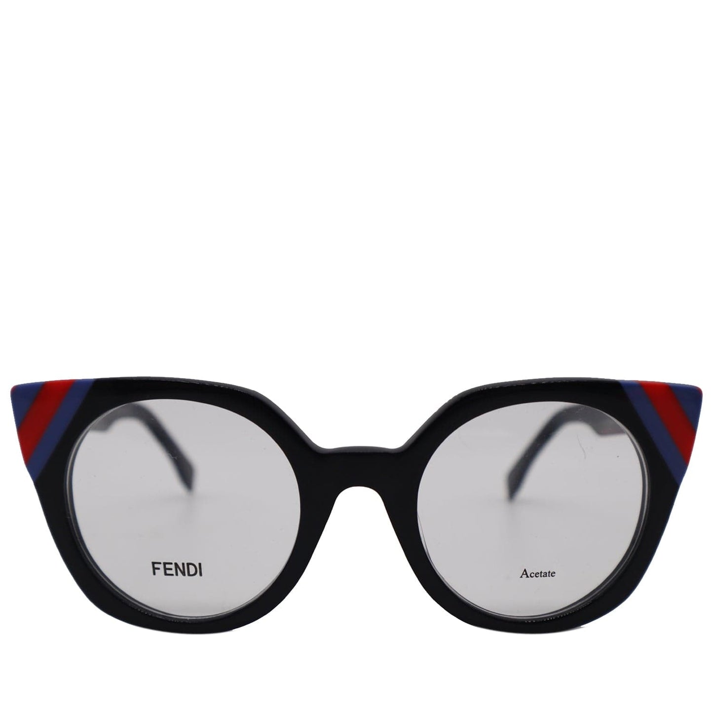 FENDI FF 0246 PJP Waves Dark Blue Striped Red Black Frame Eyeglasses Demo Lens