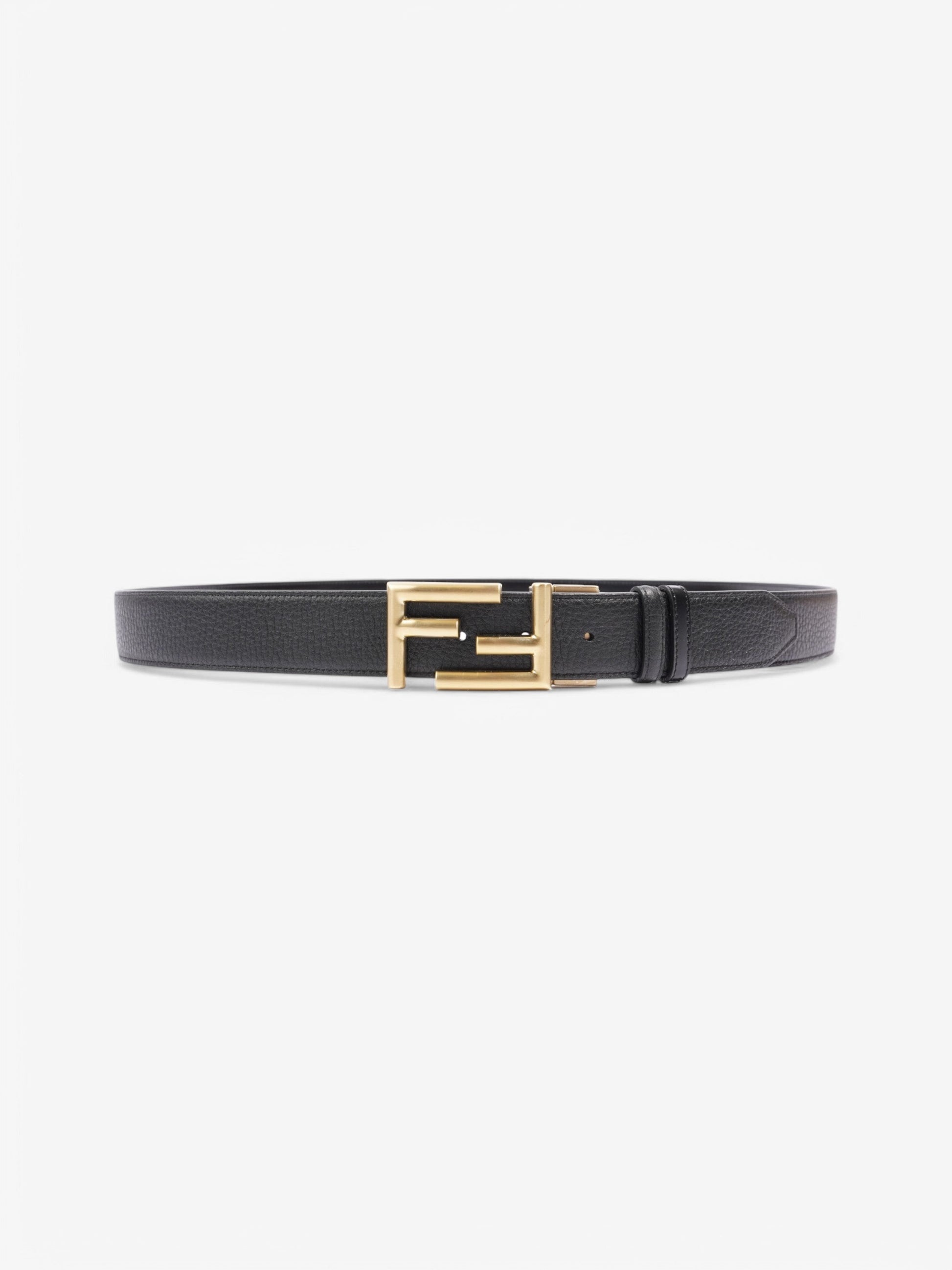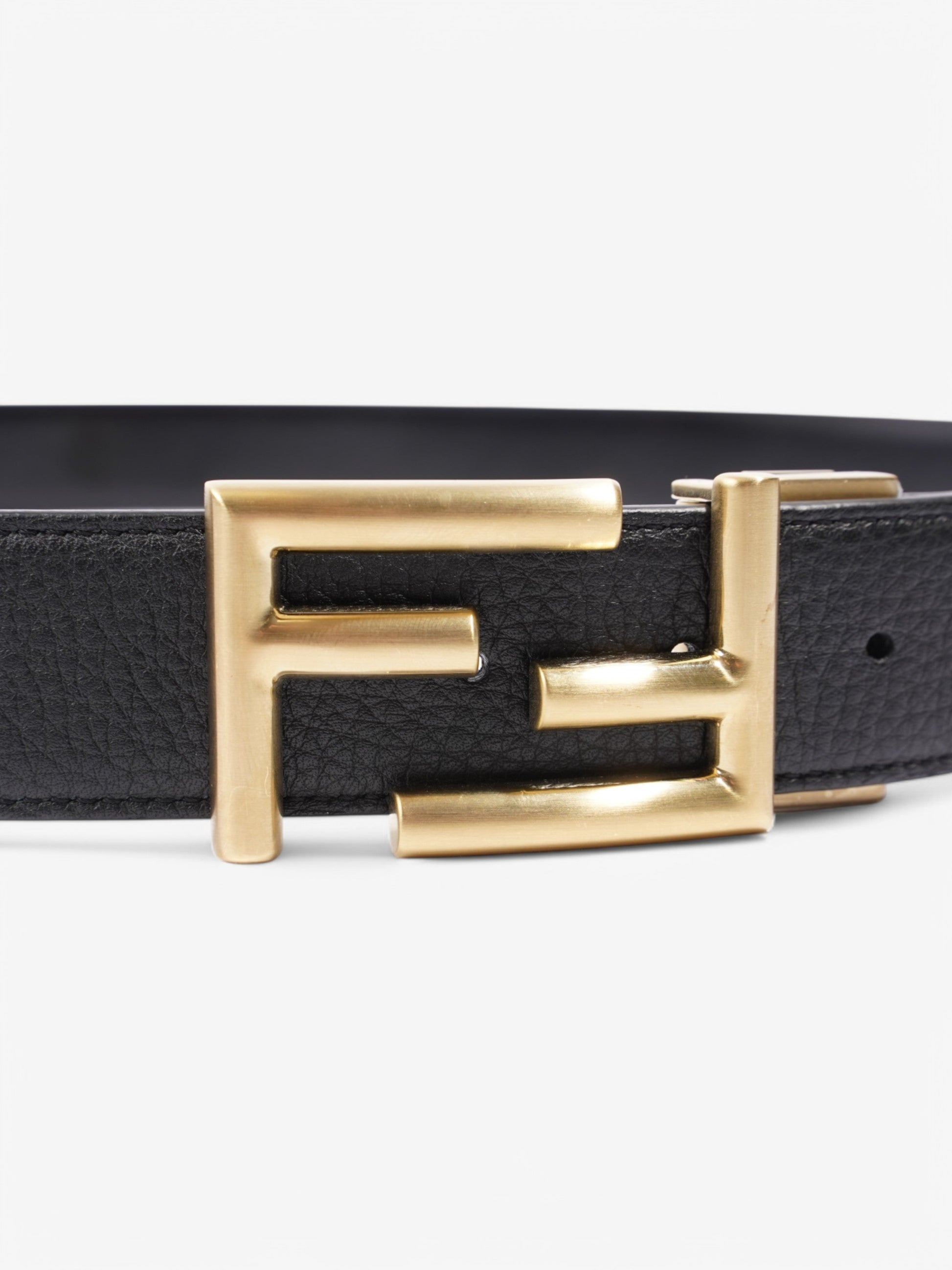 Fendi FF Reversible Belt Black / Gold Leather 139cm