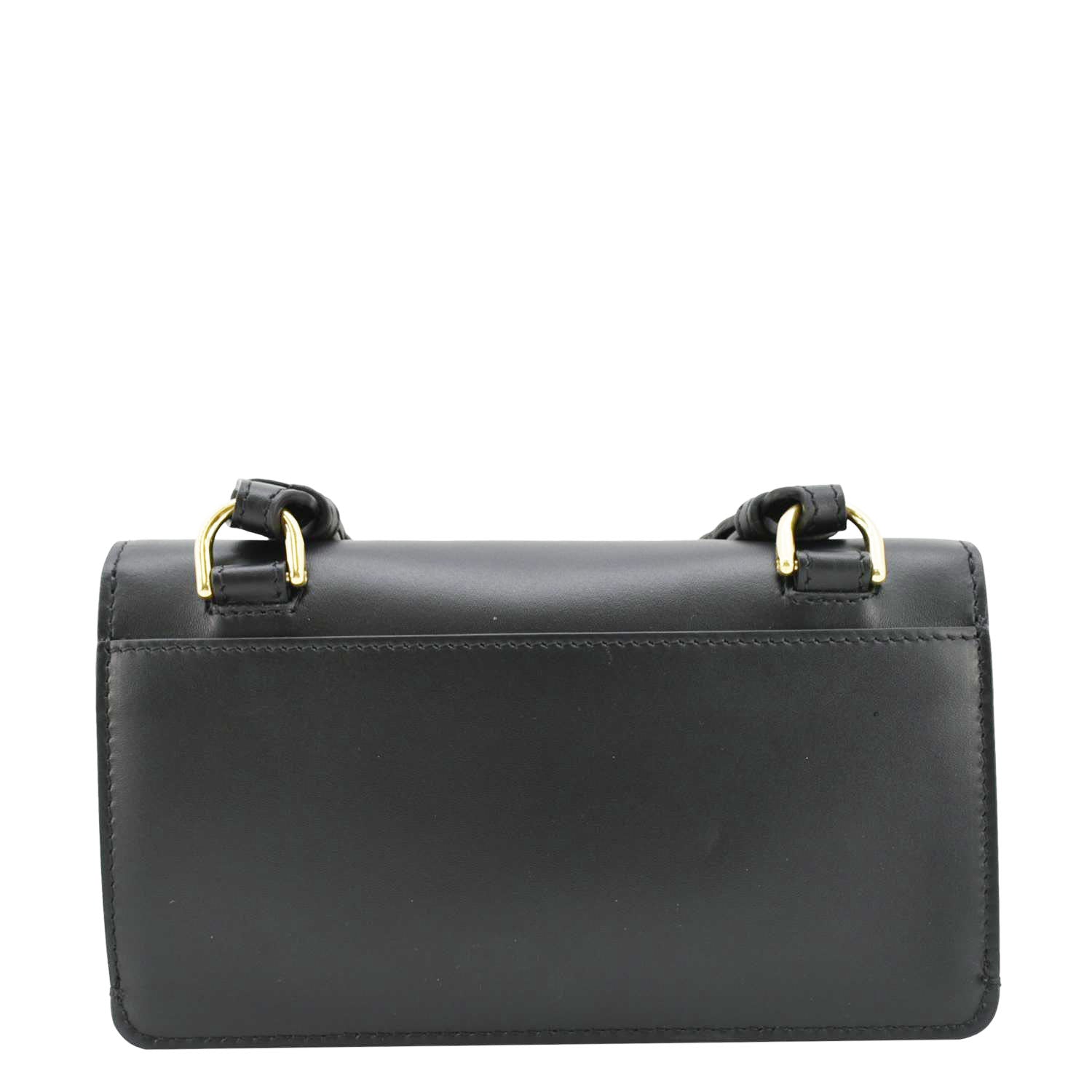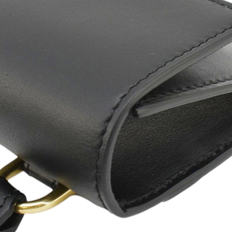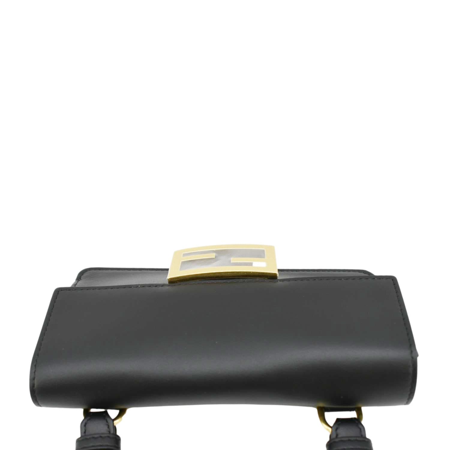 FENDI Flat Baguette Mini Leather Shoulder Bag Black