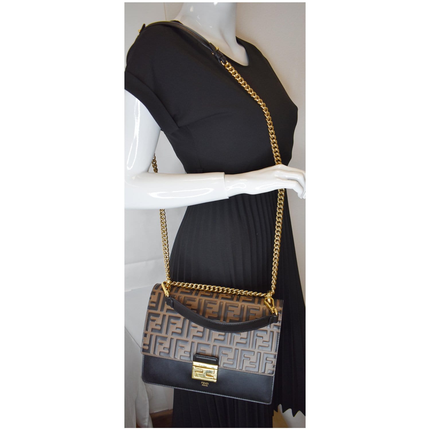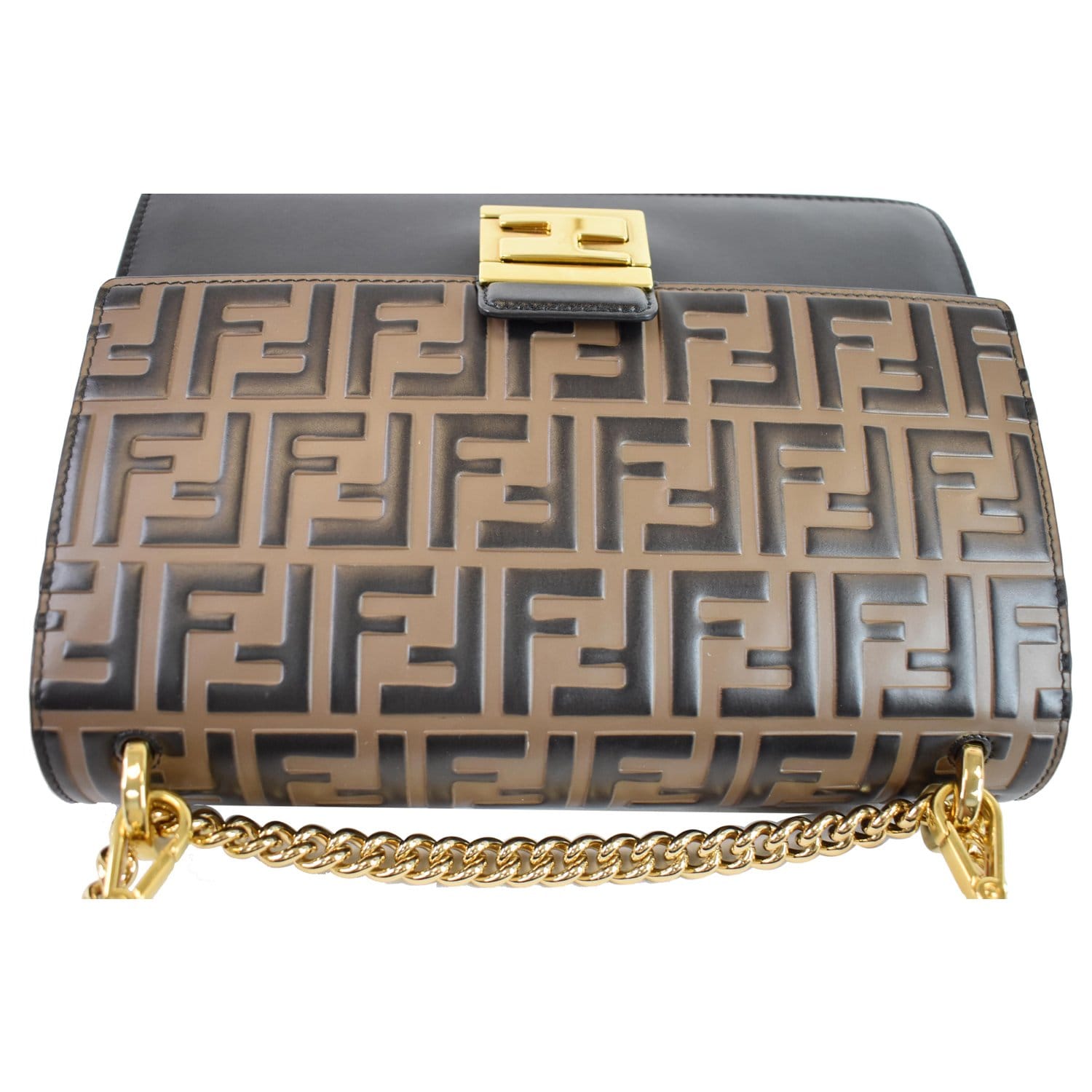 FENDI Kan I FF Logo Embossed Leather Crossbody Bag Brown