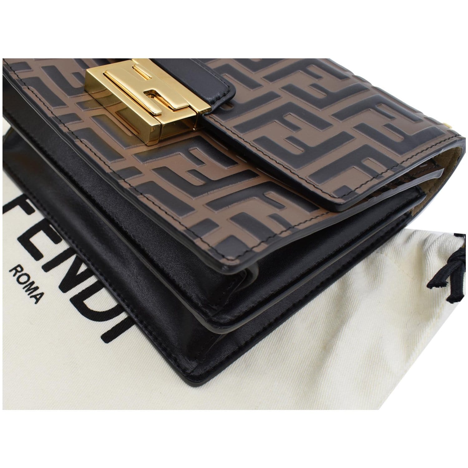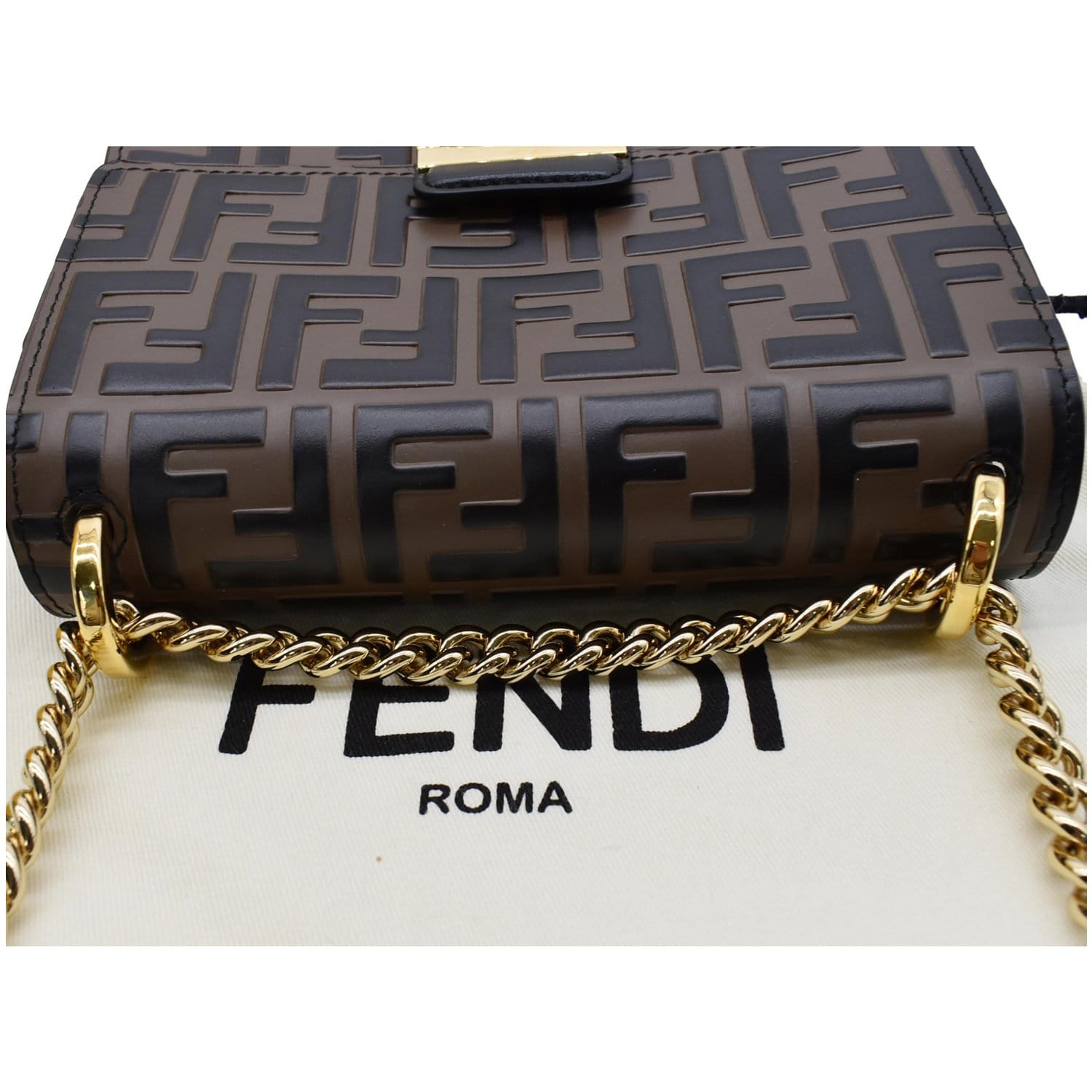 FENDI Kan U Small Embossed Leather Crossbody Bag Brown