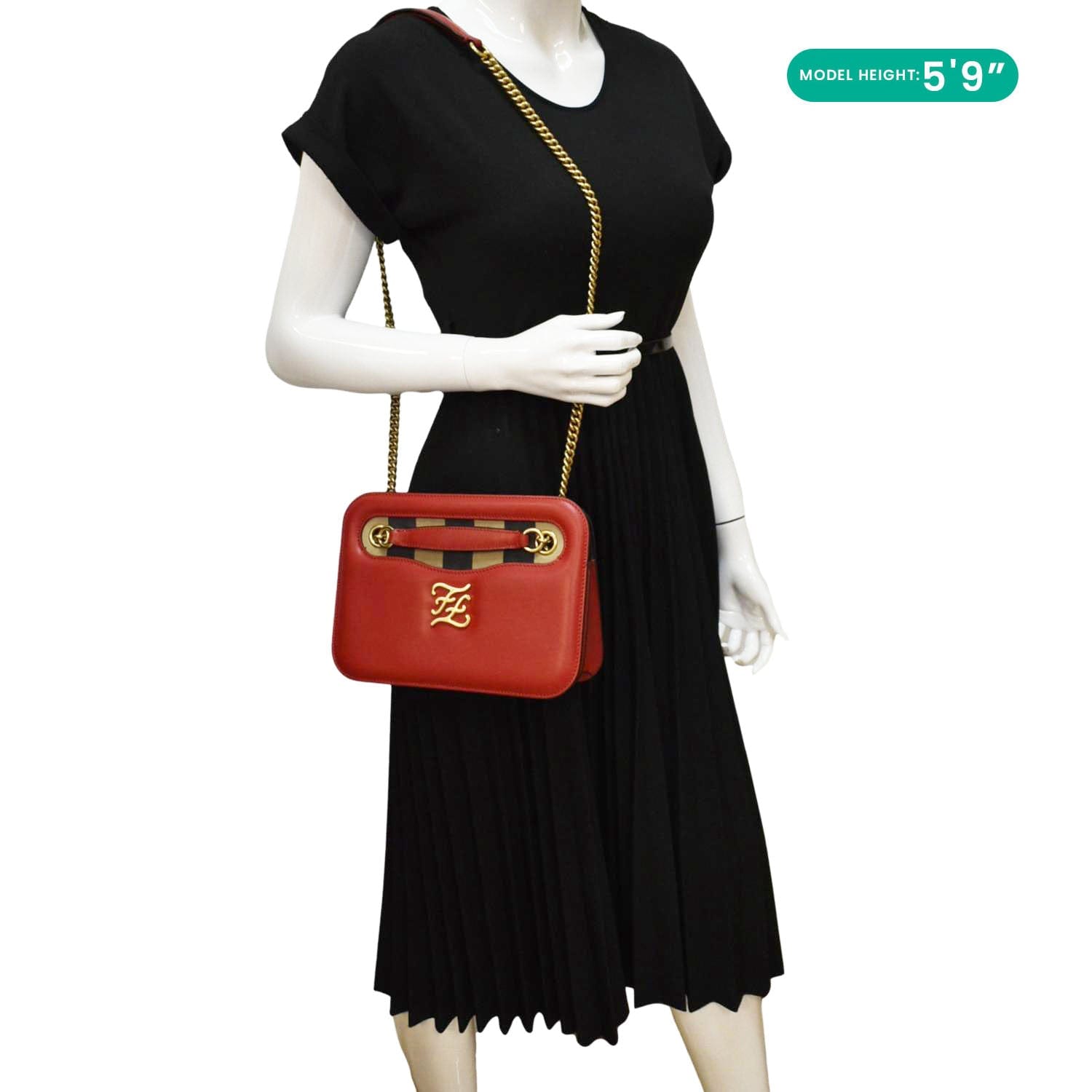 FENDI Karligraphy Pocket Vitello King Nubuck Leather Shoulder Bag Red