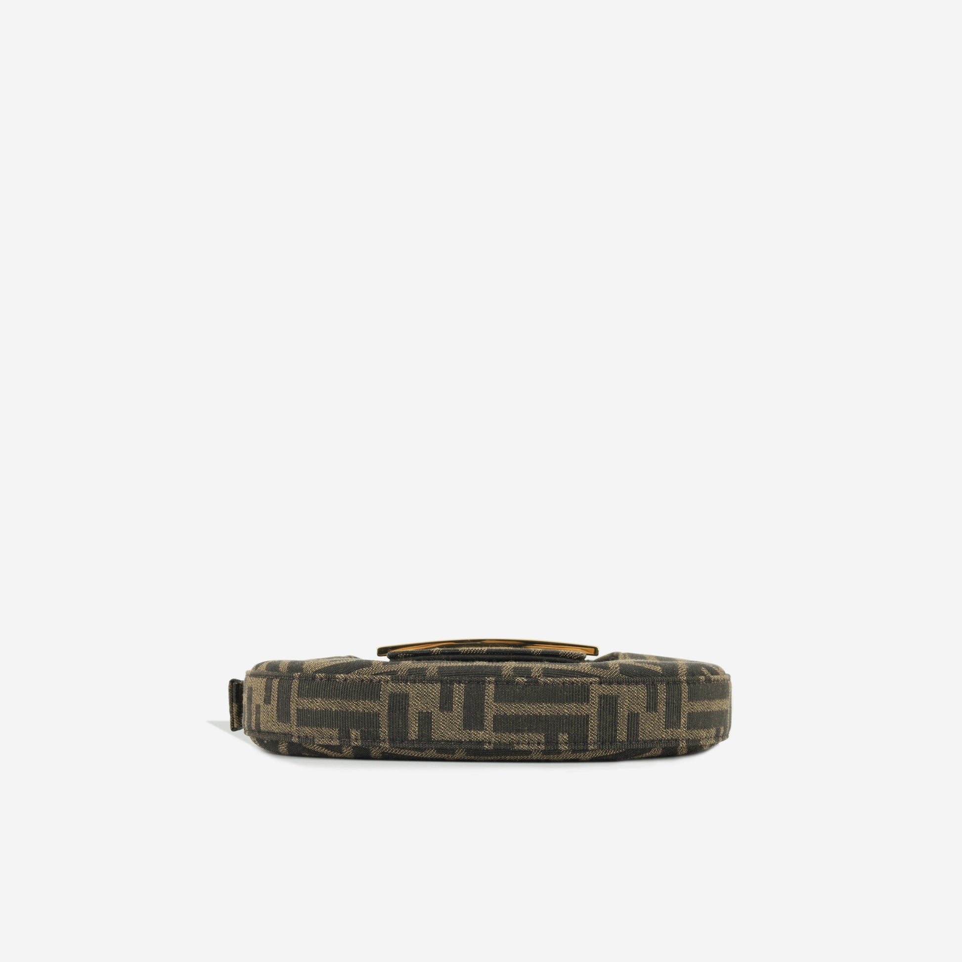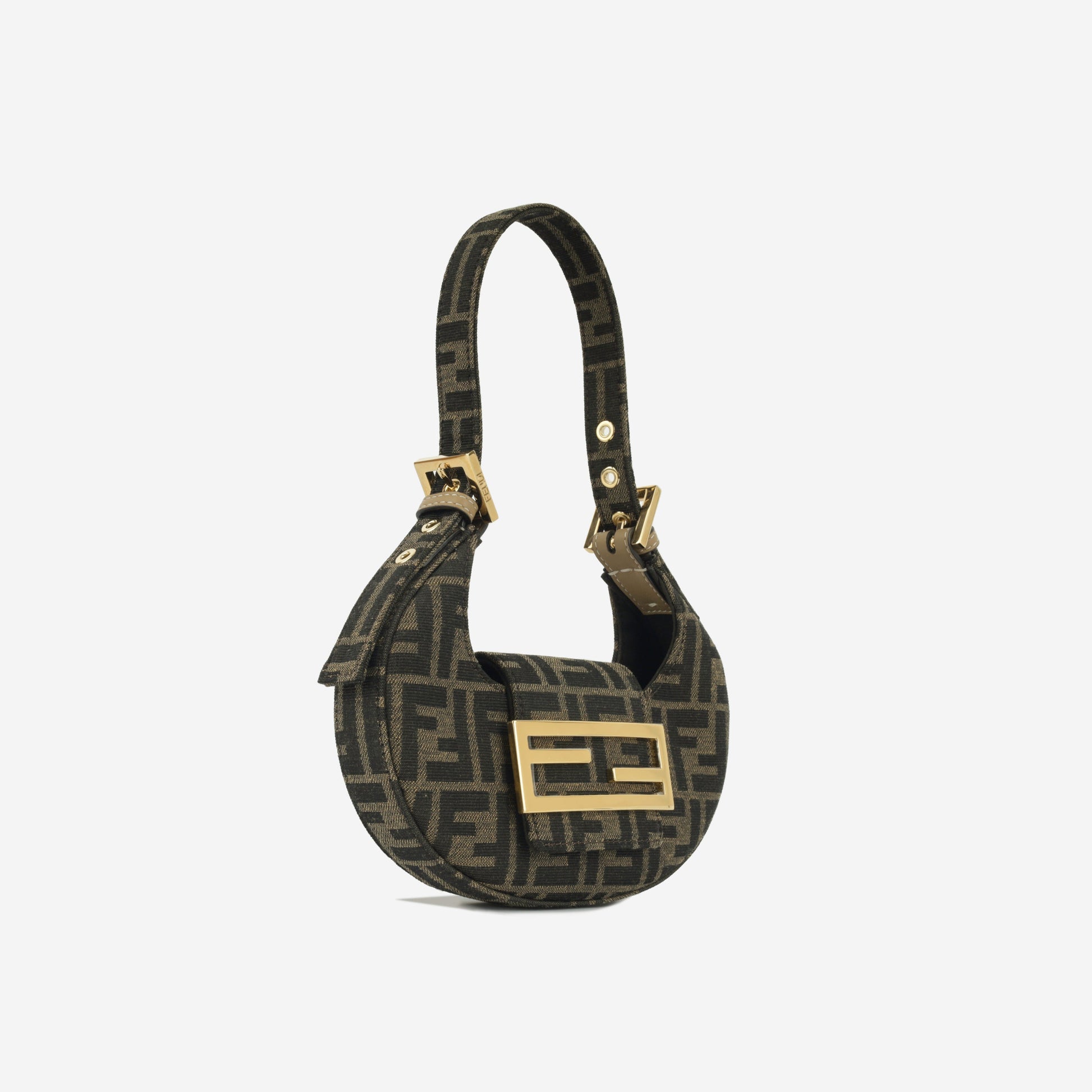 A mini hobo inspired silhouette, the Fendi Mini Cookie is crafted from FF motif jacquard fabric. Featuring an FF gold-tone clasp, the bag can be carried by hand.