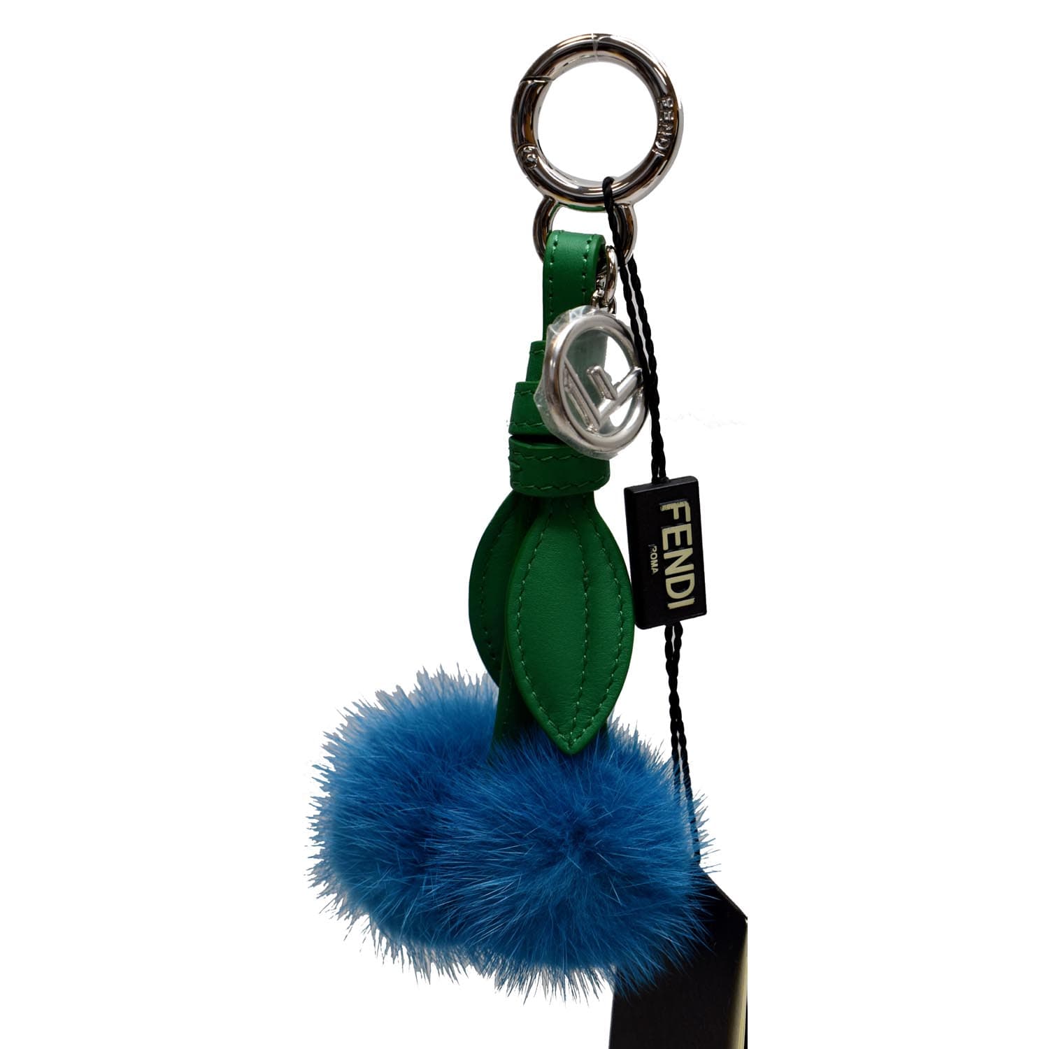 FENDI Mink Fur F Cherry Leather Bag Charm Blue